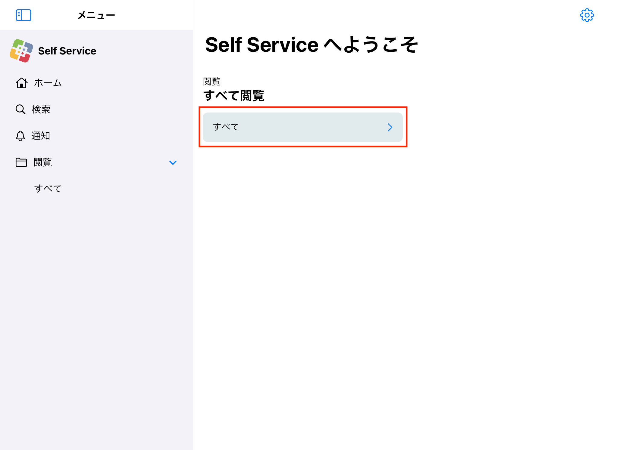 ホーム画面より「Self Service」アプリを開いてください。