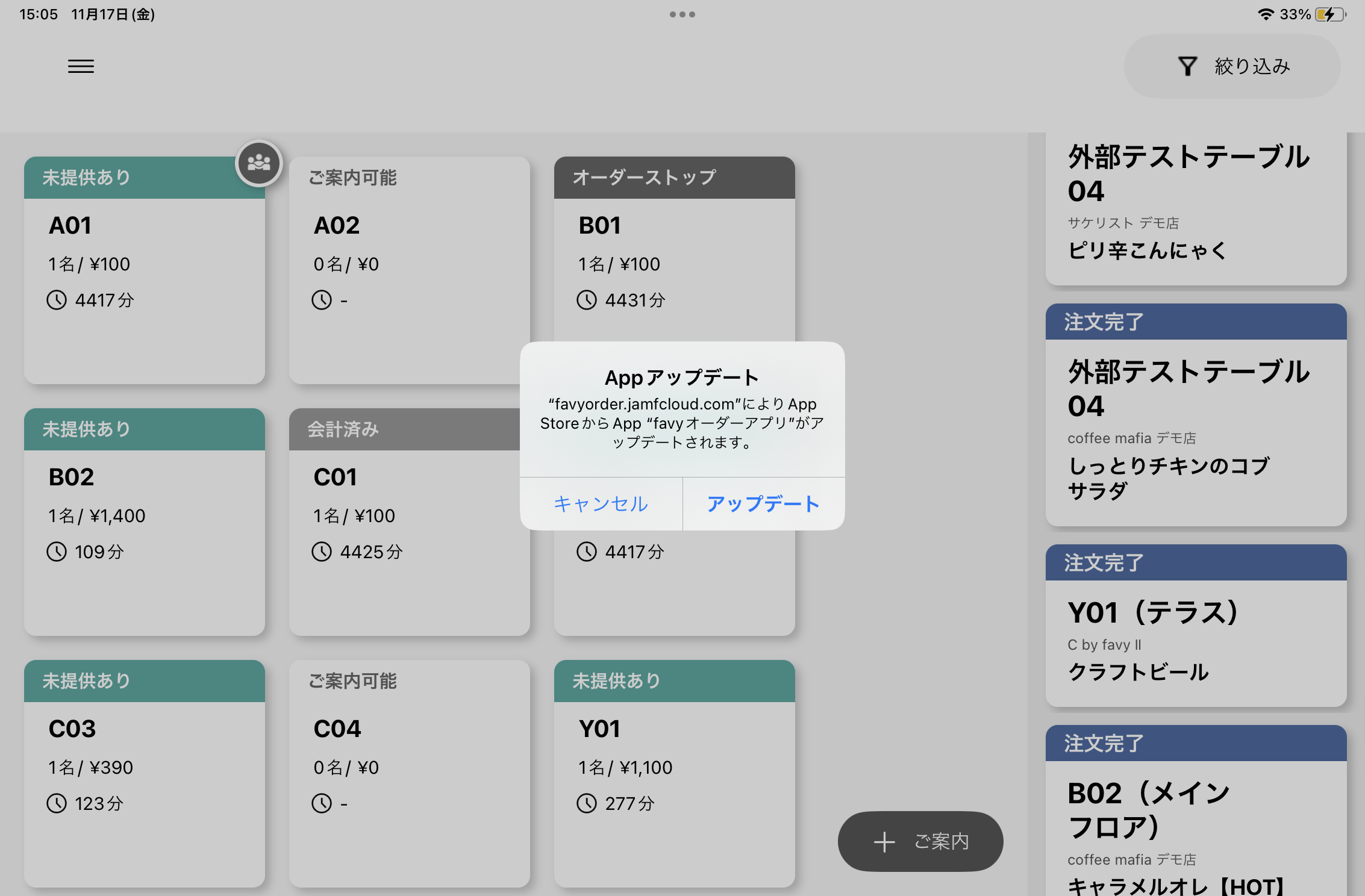 favyオーダーアプリは常に改善されているため、最新のバージョンにアップデートをお願いします。