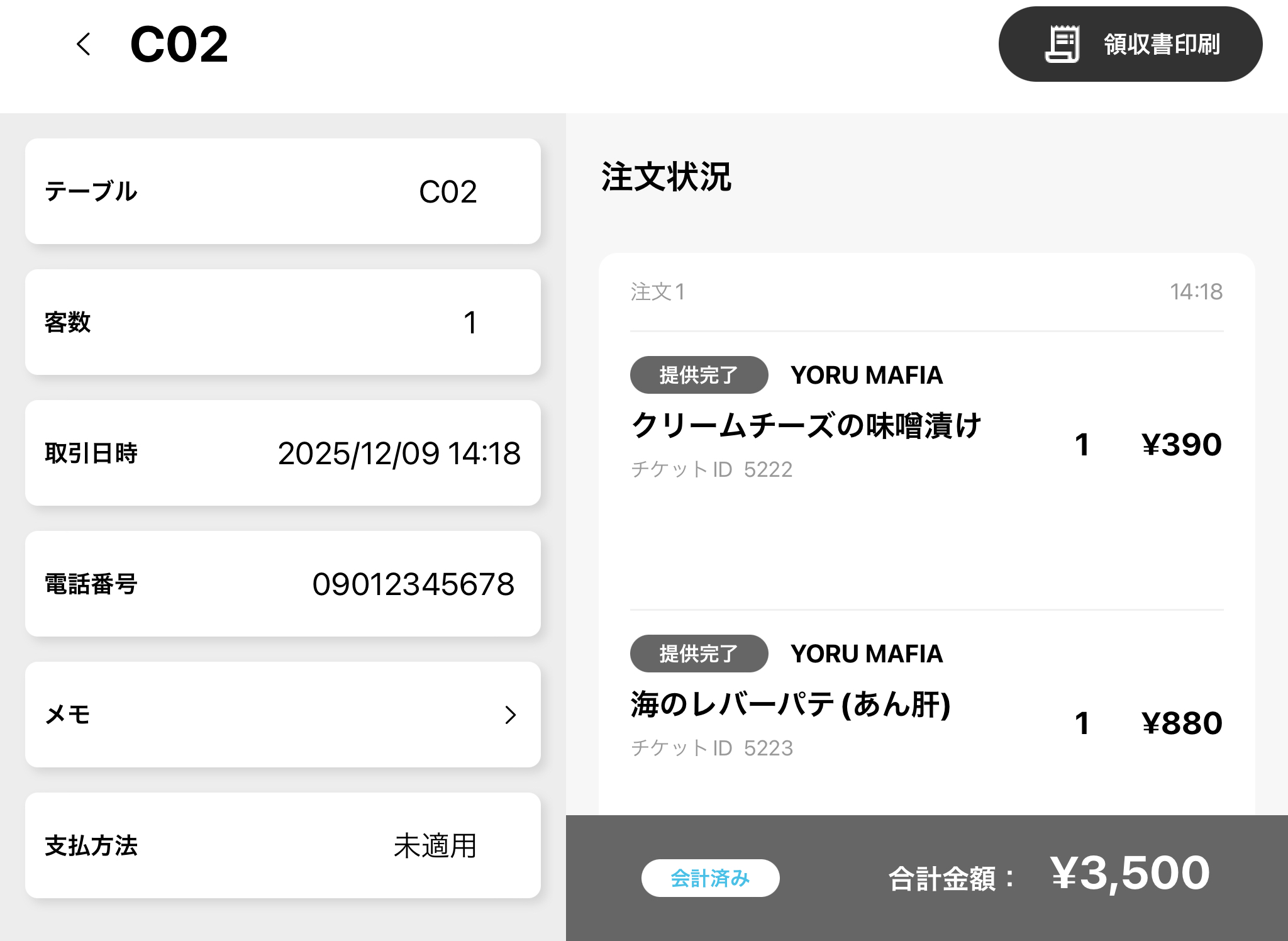 これにより、過去の取引内容を確認したり領収書を印刷したりすることが可能です。