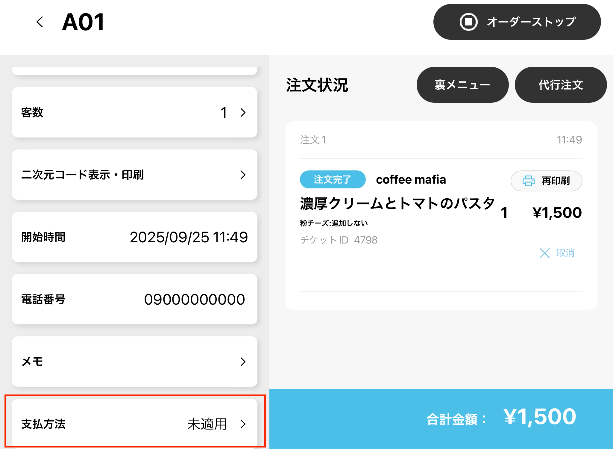 この修正により、オーダーストップ・会計の前にクーポンや割引券などの支払い方法を追加しておくことができるようになりました。
