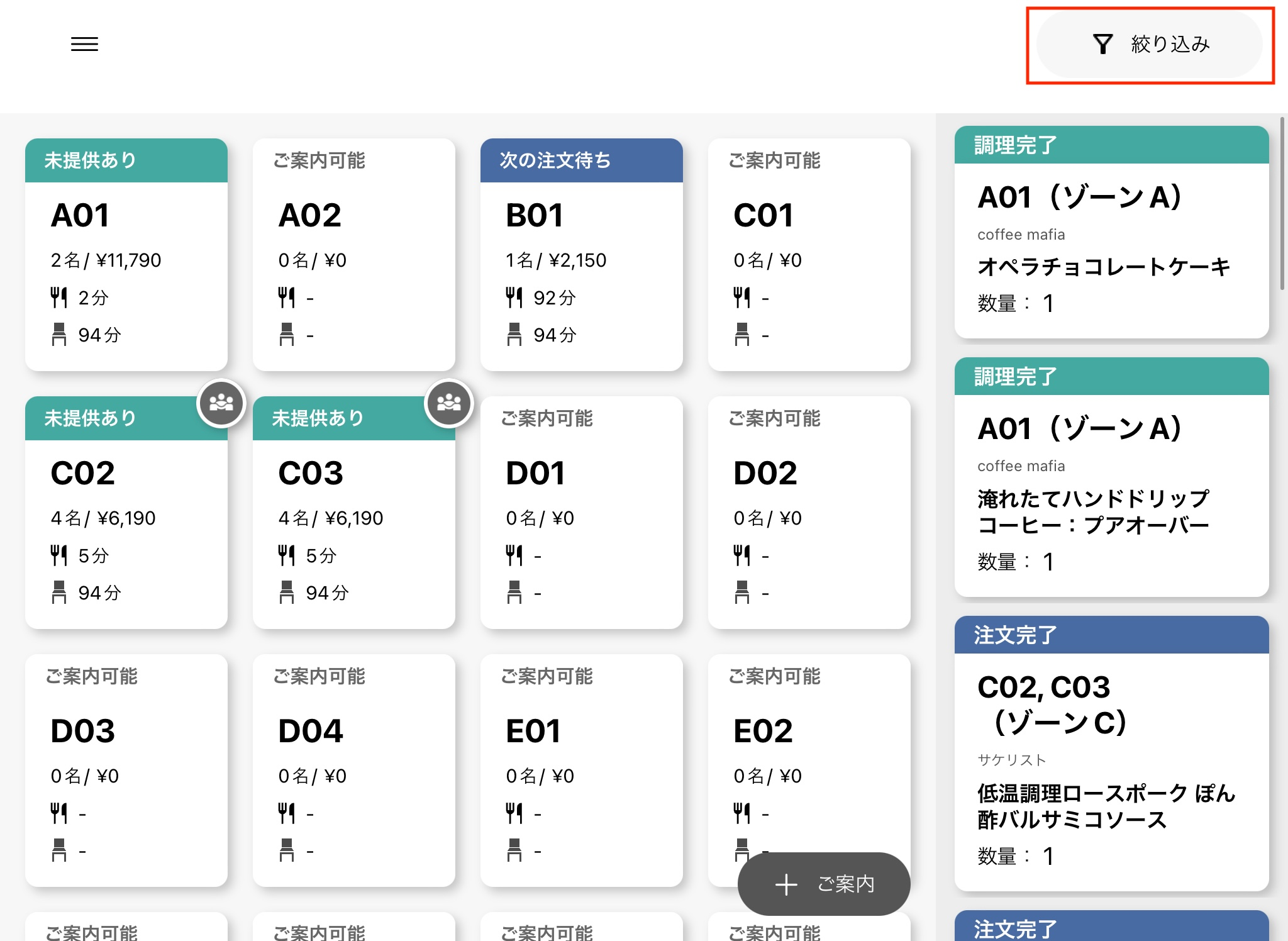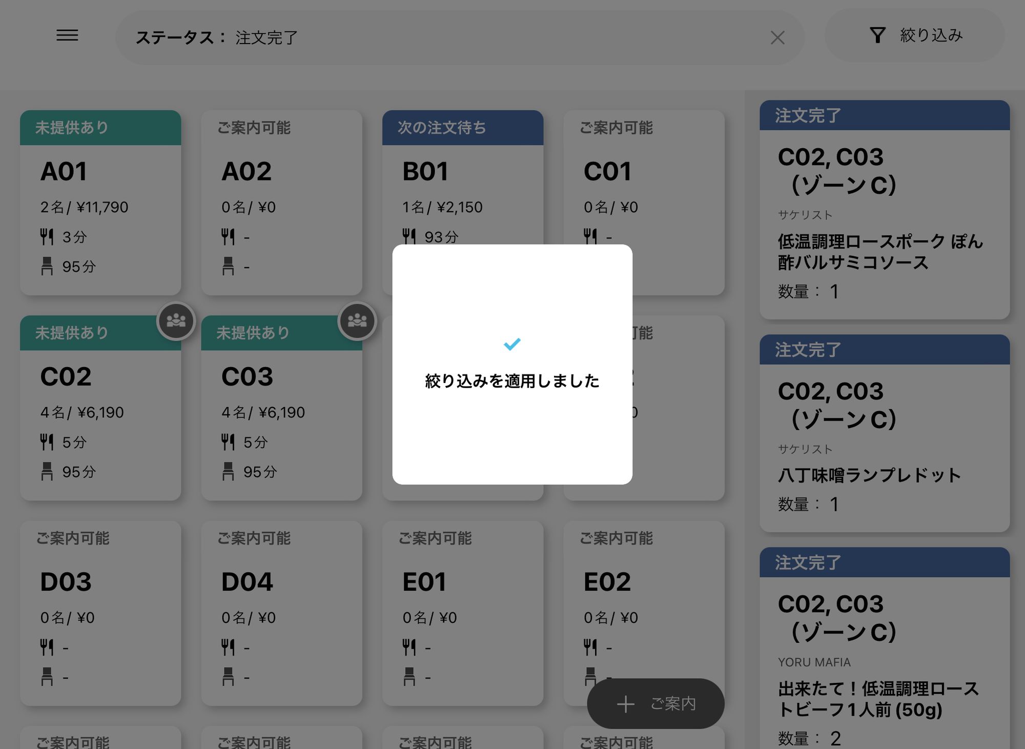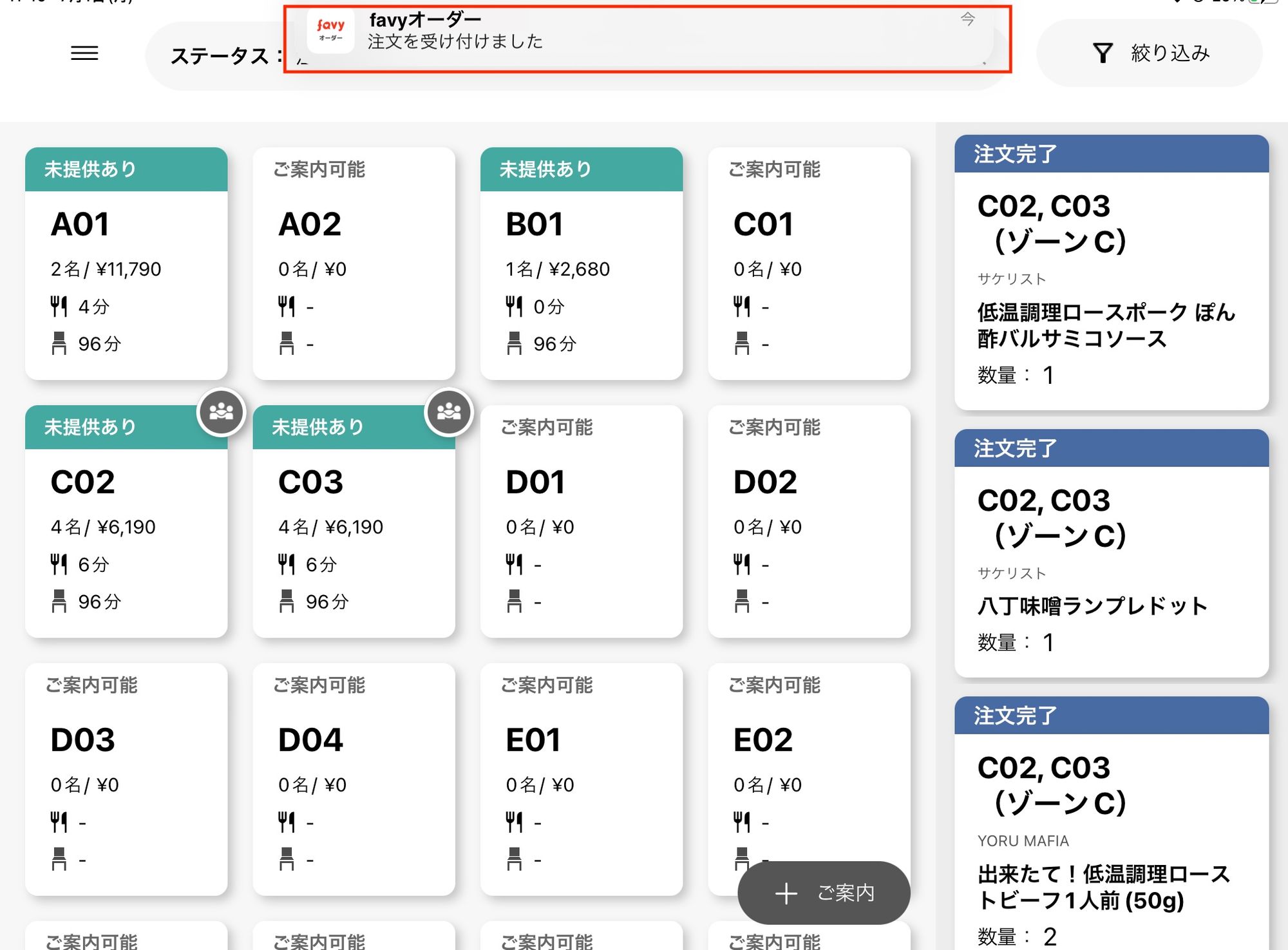 favyオーダーアプリ館ログイン時の画面にて、「調理完了」「注文完了」など複数のステータスのチケットがたくさん表示されて、画面が見にくくなってしまう……と思った経験はありませんか?