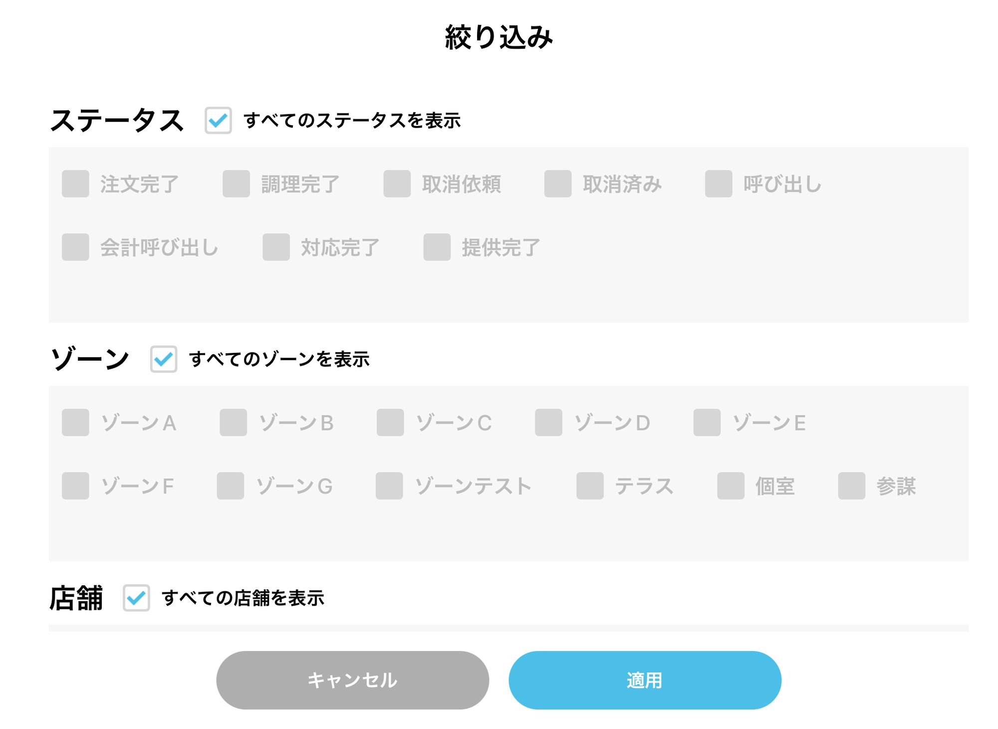 キッチンプリンターと連携している場合は、絞り込みを設定していてもすべての伝票が印刷されます。