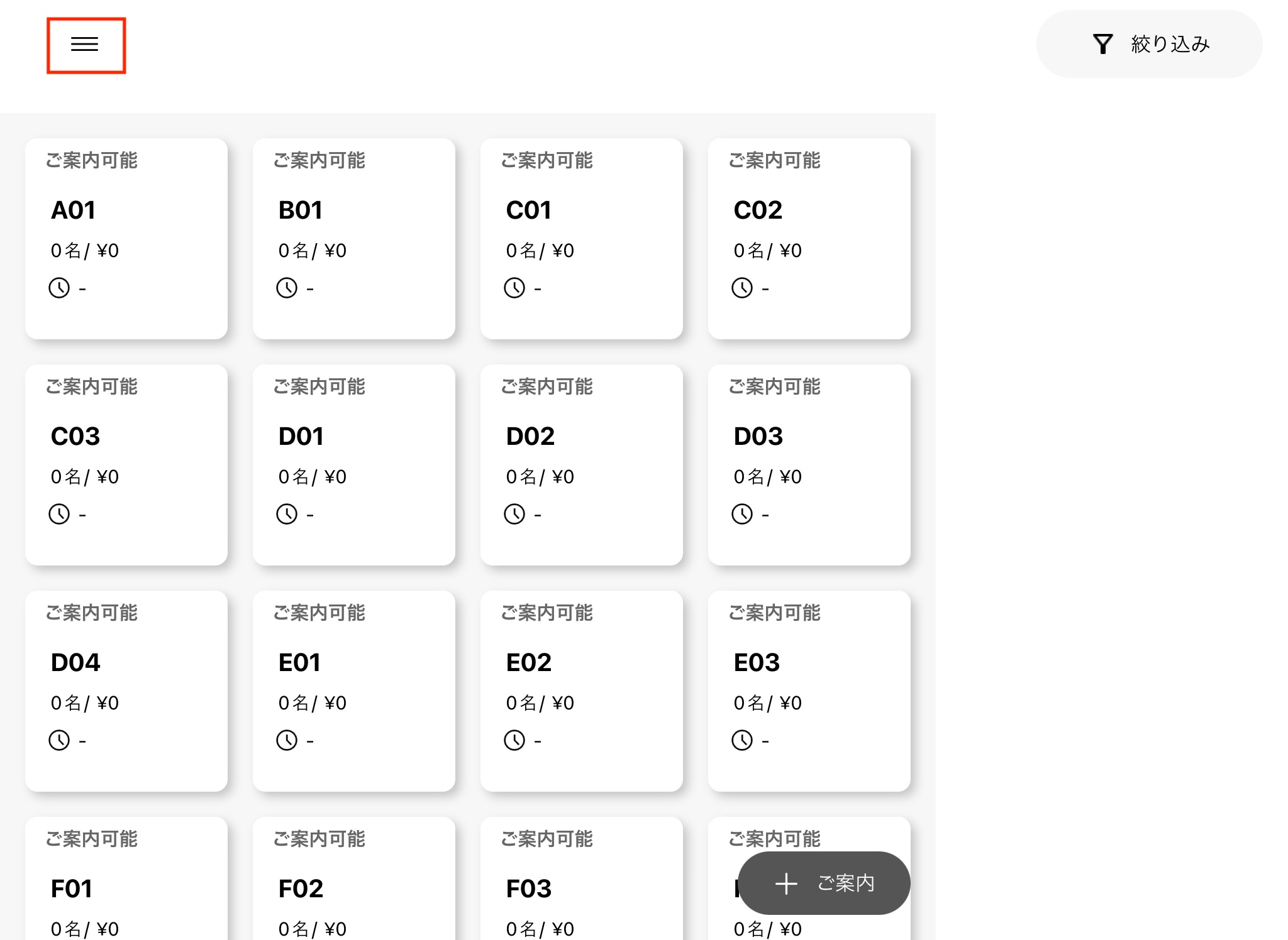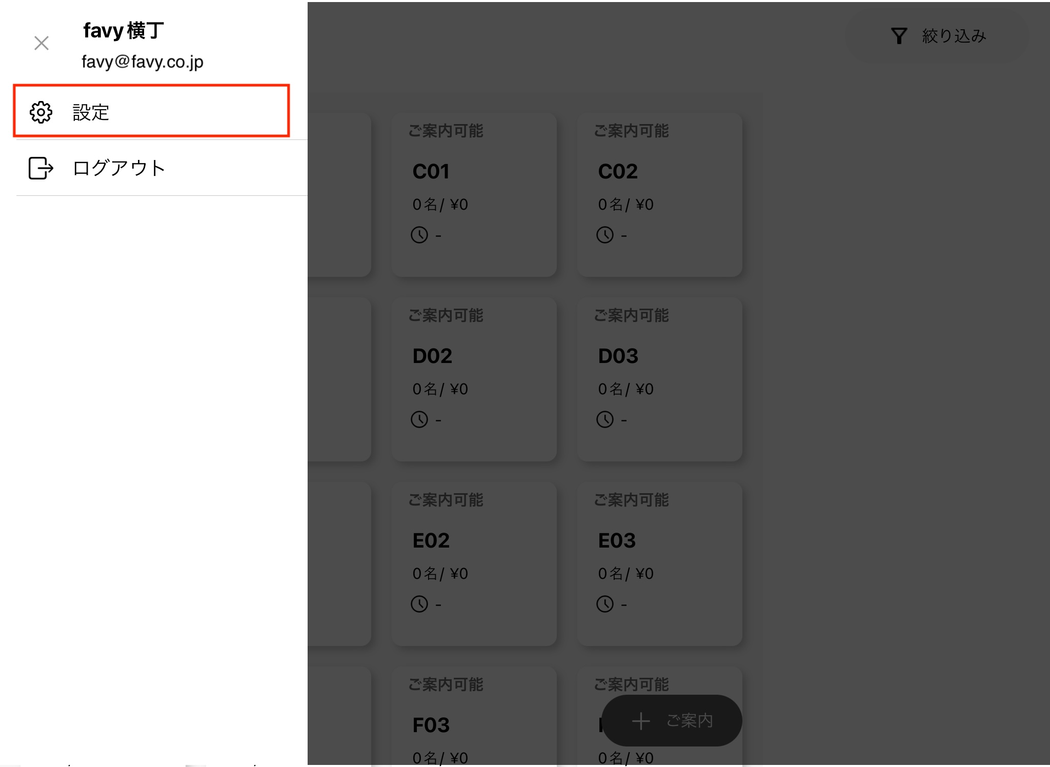 左上のナビゲーションメニュー「≡」を選択し、メニュー画面を開きます。
