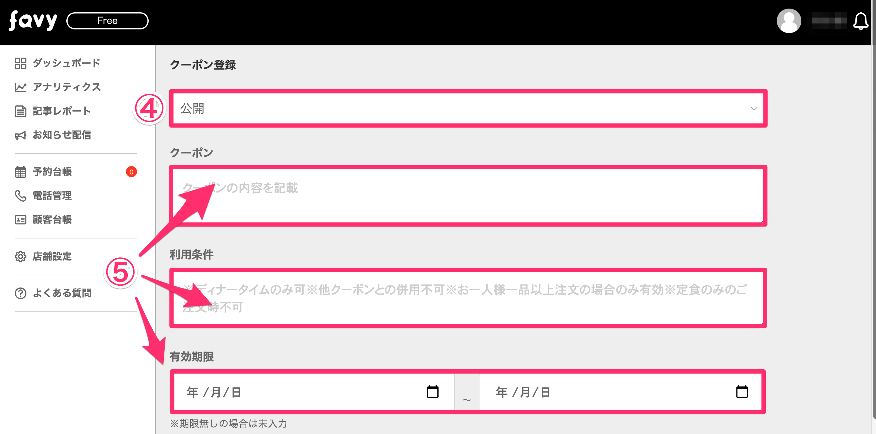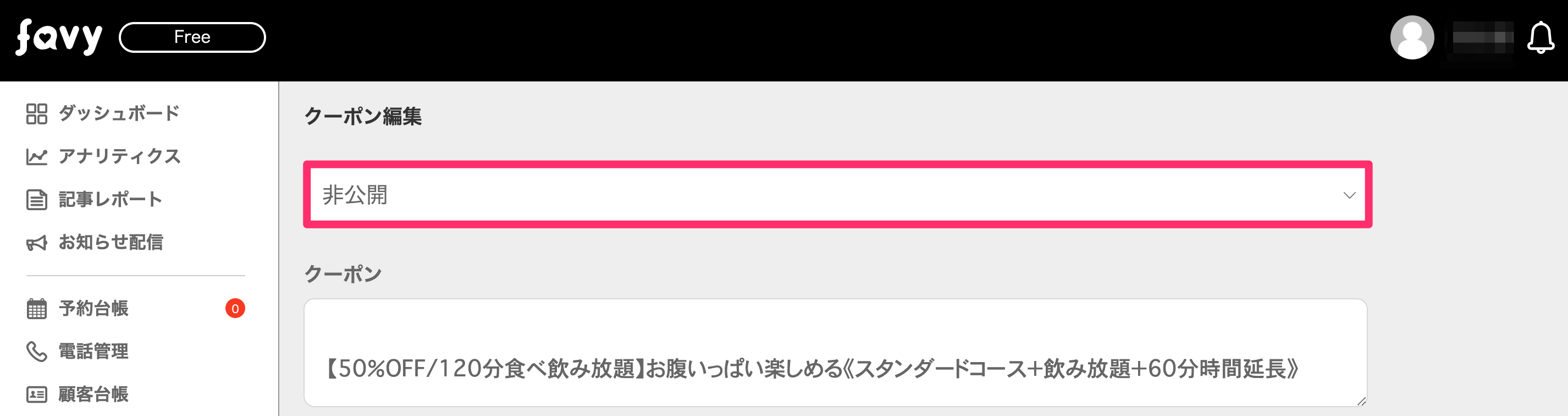 ※非公開にするとクーポン設定画面の一番下に配置され、favyページのmap画面から非表示となります。
