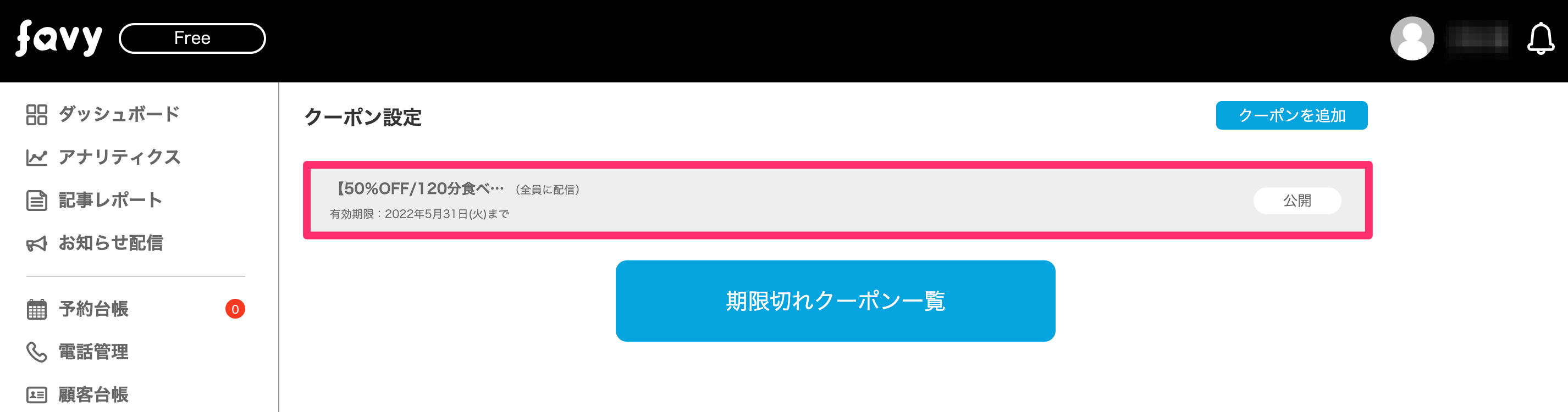 ※作成したクーポンの削除機能は現在ご用意がございませんので、何とぞご了承ください
