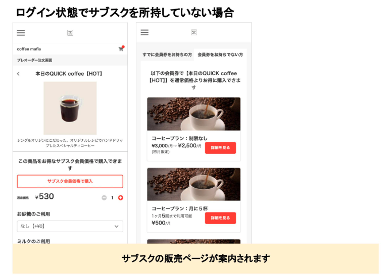 また、サブスク会員限定でモバイルオーダー注文メニューを特別価格で提供することもできるのでリピート率も上がります。