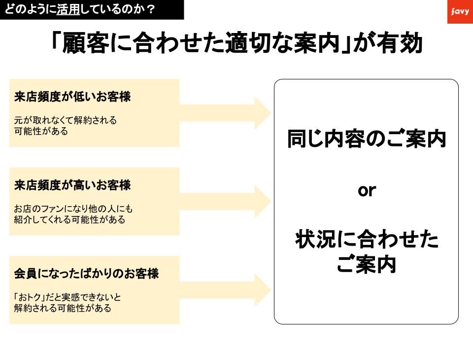また取得データを元に「顧客に合わせた適切な案内」が有効です。