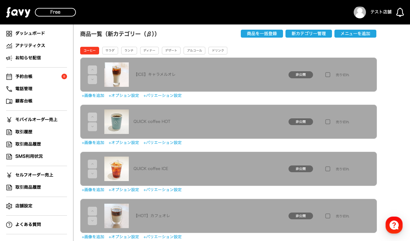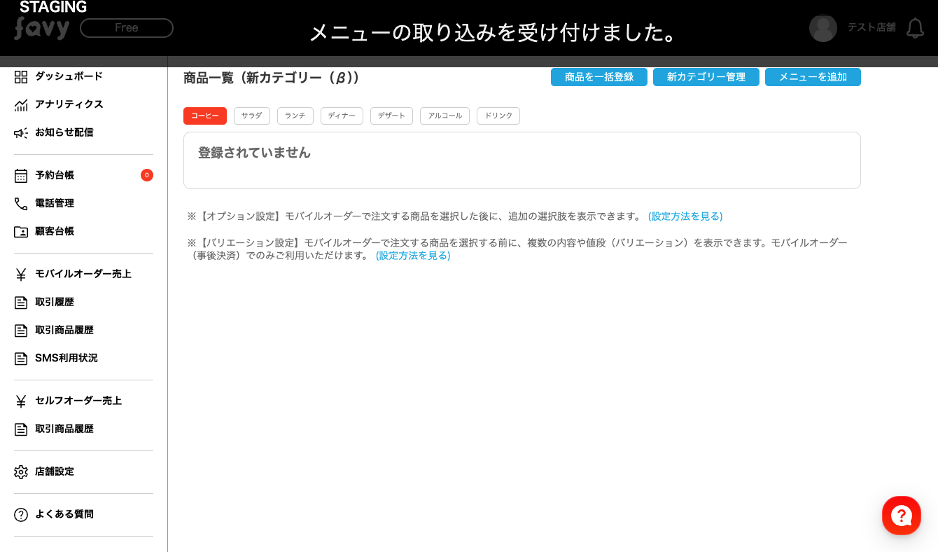 登録件数によってはメニューの反映に時間がかかる場合があります。