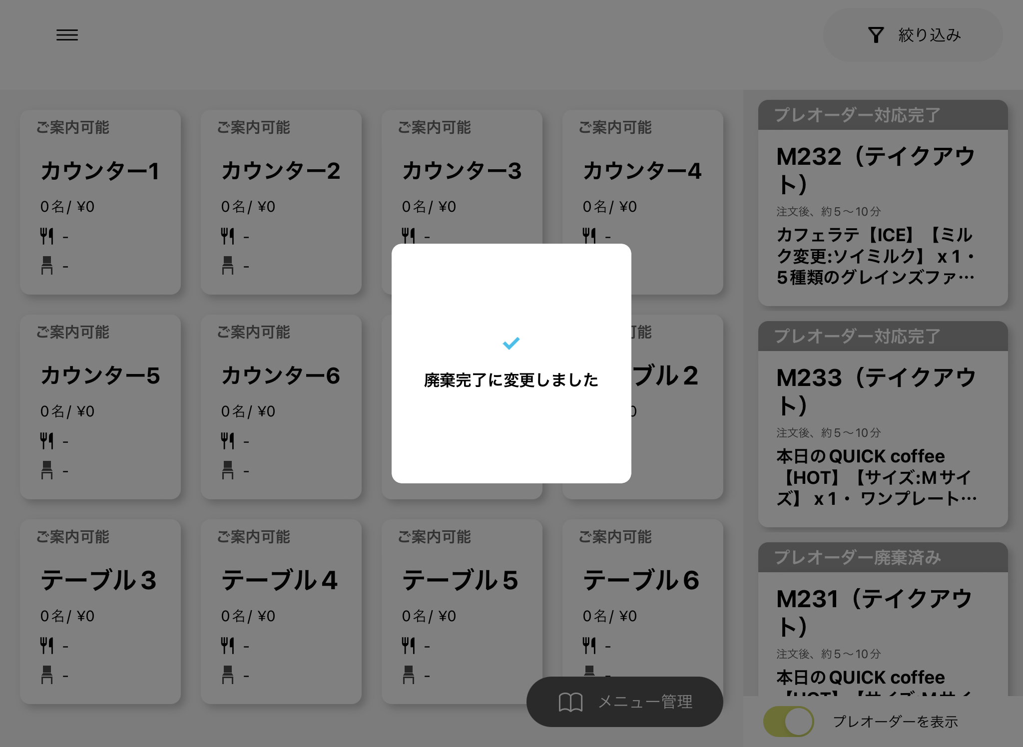 チケットが「プレオーダー廃棄済み」に変わり、下に表示されます。