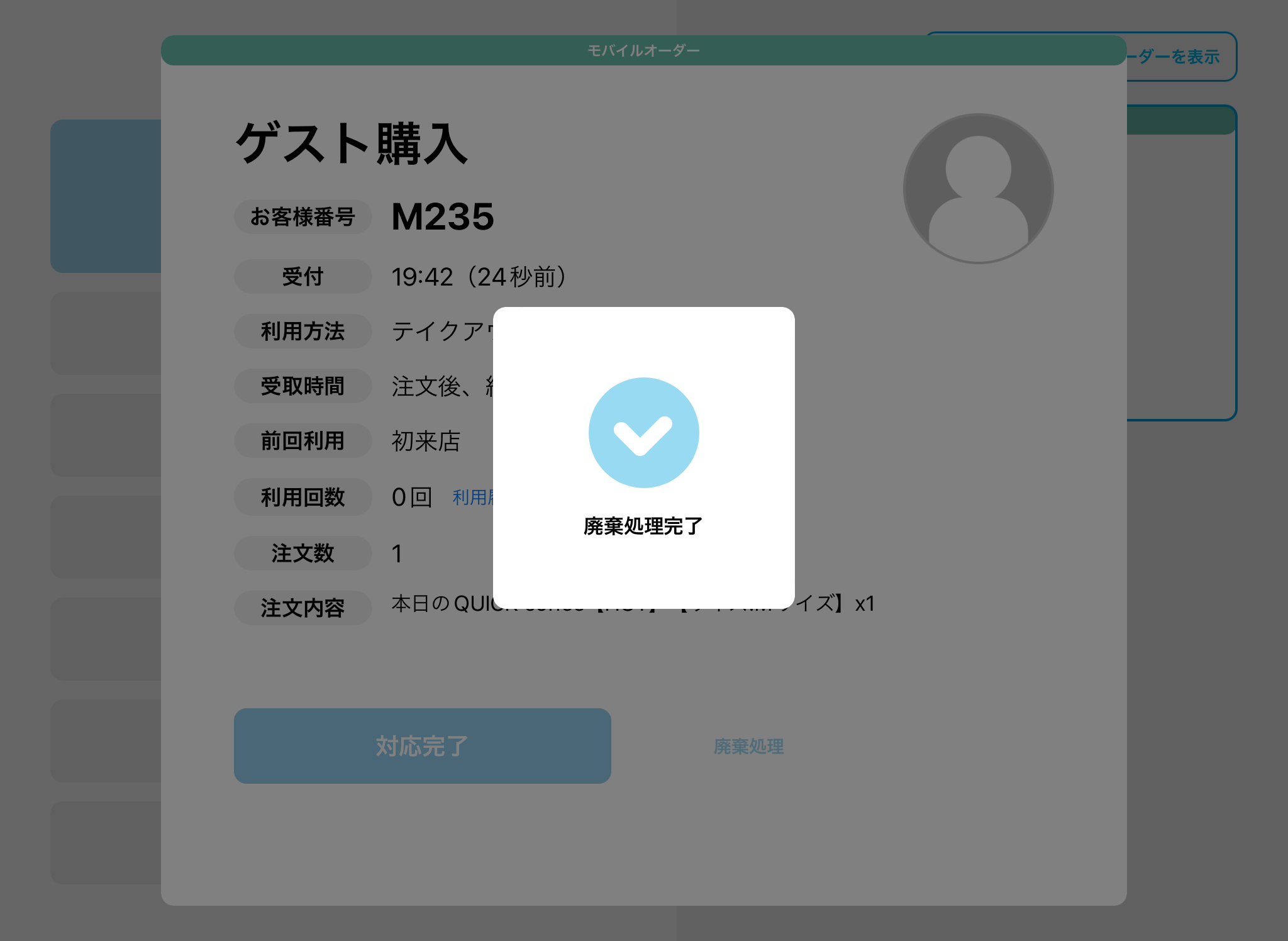 お客さまに廃棄したことをお知らせするメールが送信されます。