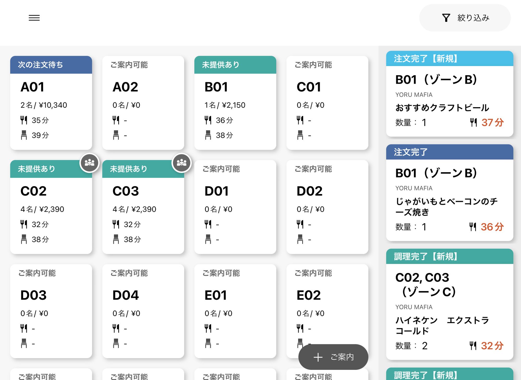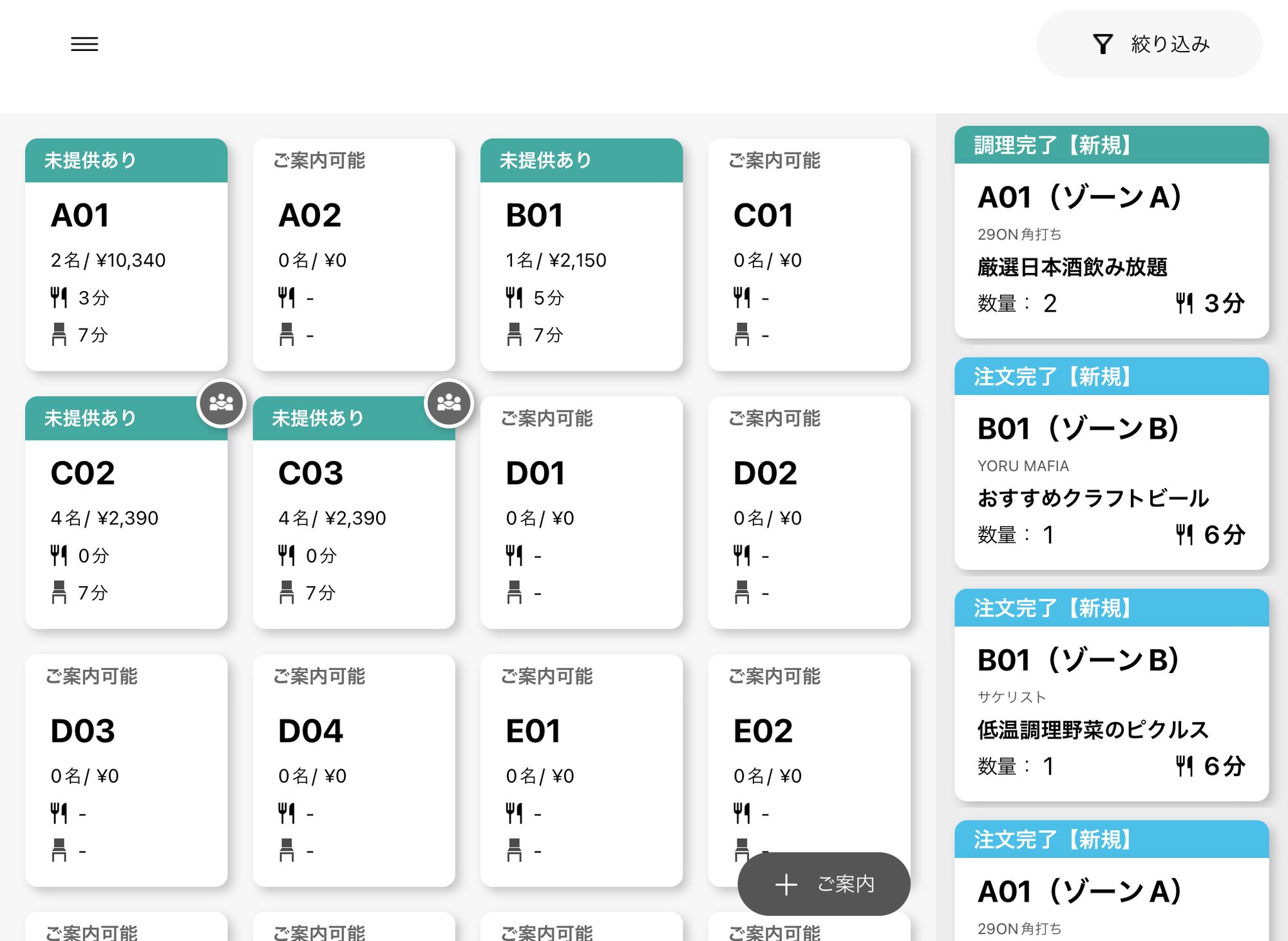 オペレーションの効率化:注文の滞留状況を把握し、キッチンや配膳の作業フローを最適化できます。