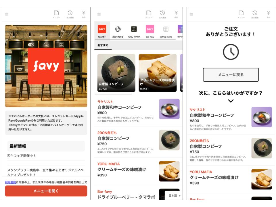 favyモバイルオーダーはスマートフォンからお客さまが自分で注文するスタイルのオーダーシステムです。