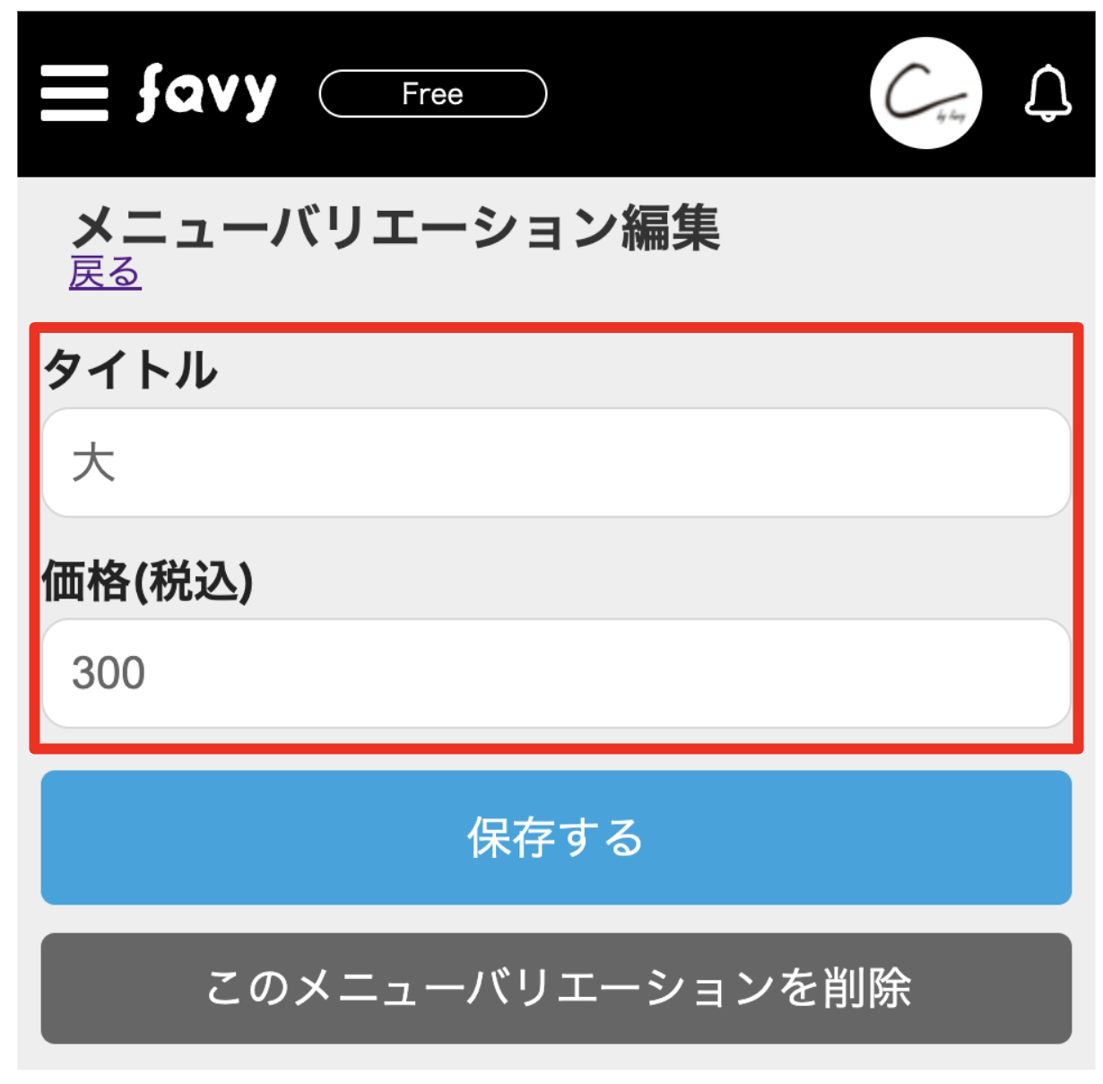 「タイトル」「価格」を記入後、「保存する」を選択します