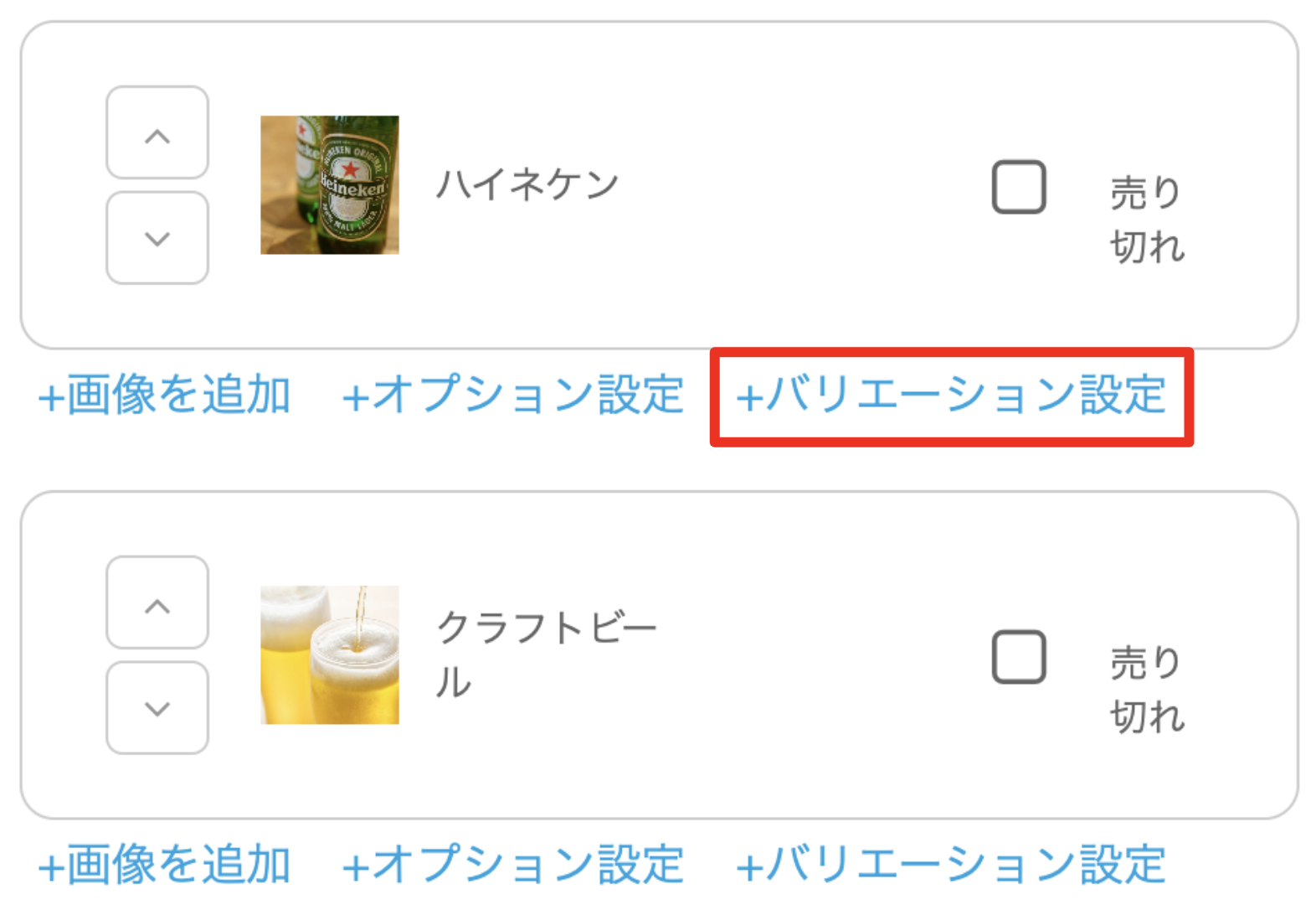 バリエーションを増やすときは「バリエーションを追加」を選択します