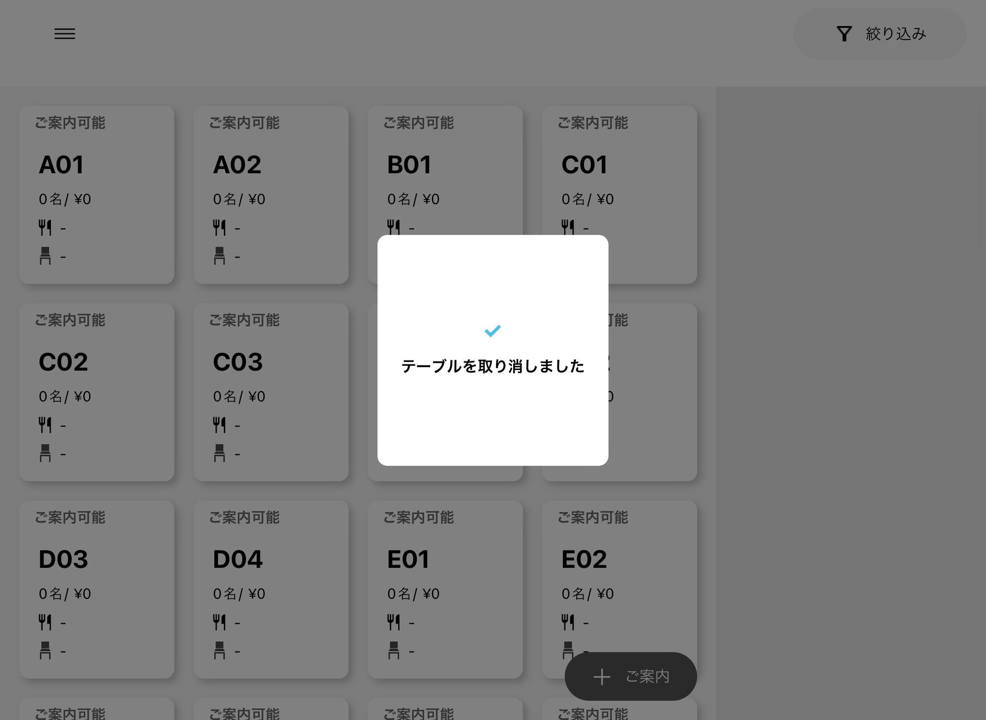 間違えてテーブルを作成してしまった場合、取消処理に手間が掛かっていましたが、操作の手間を大幅に減らすことができ、スタッフの負担も軽減されます。 この機能により業務の効率化が進み、繁忙時間帯でもスムーズな運営が可能となります。