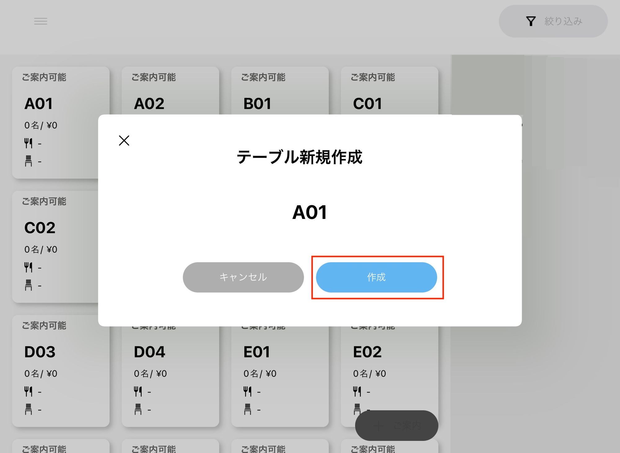 ※これまで通り「ご案内」を選択してのテーブル作成も可能です。