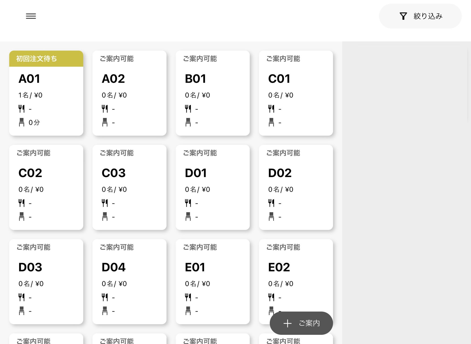 お客さまが来店されてから、テーブルにご案内する際は「ご案内」ボタンを押してから新規テーブル(二次元コード)を作成する必要がありました。(複数の操作ステップが必要)