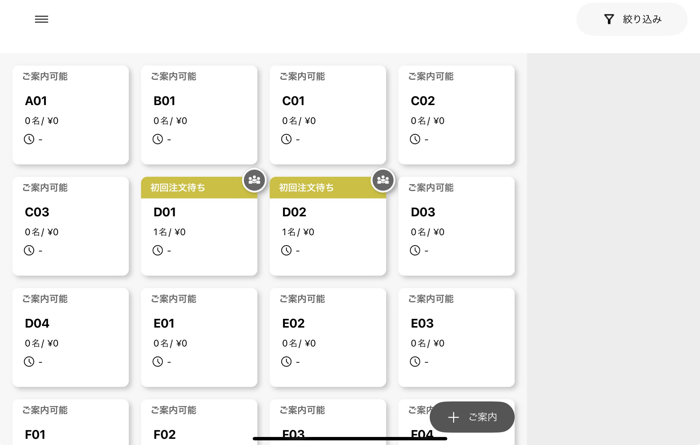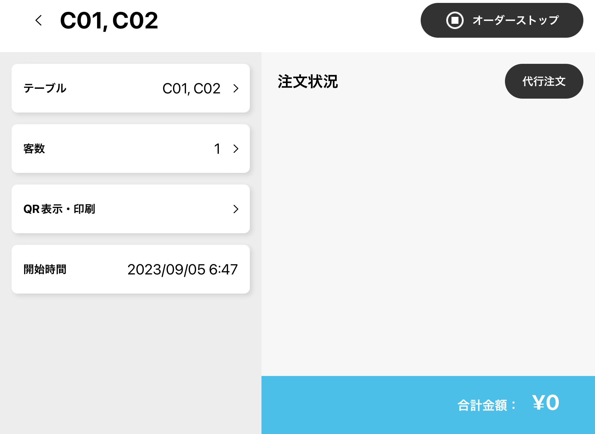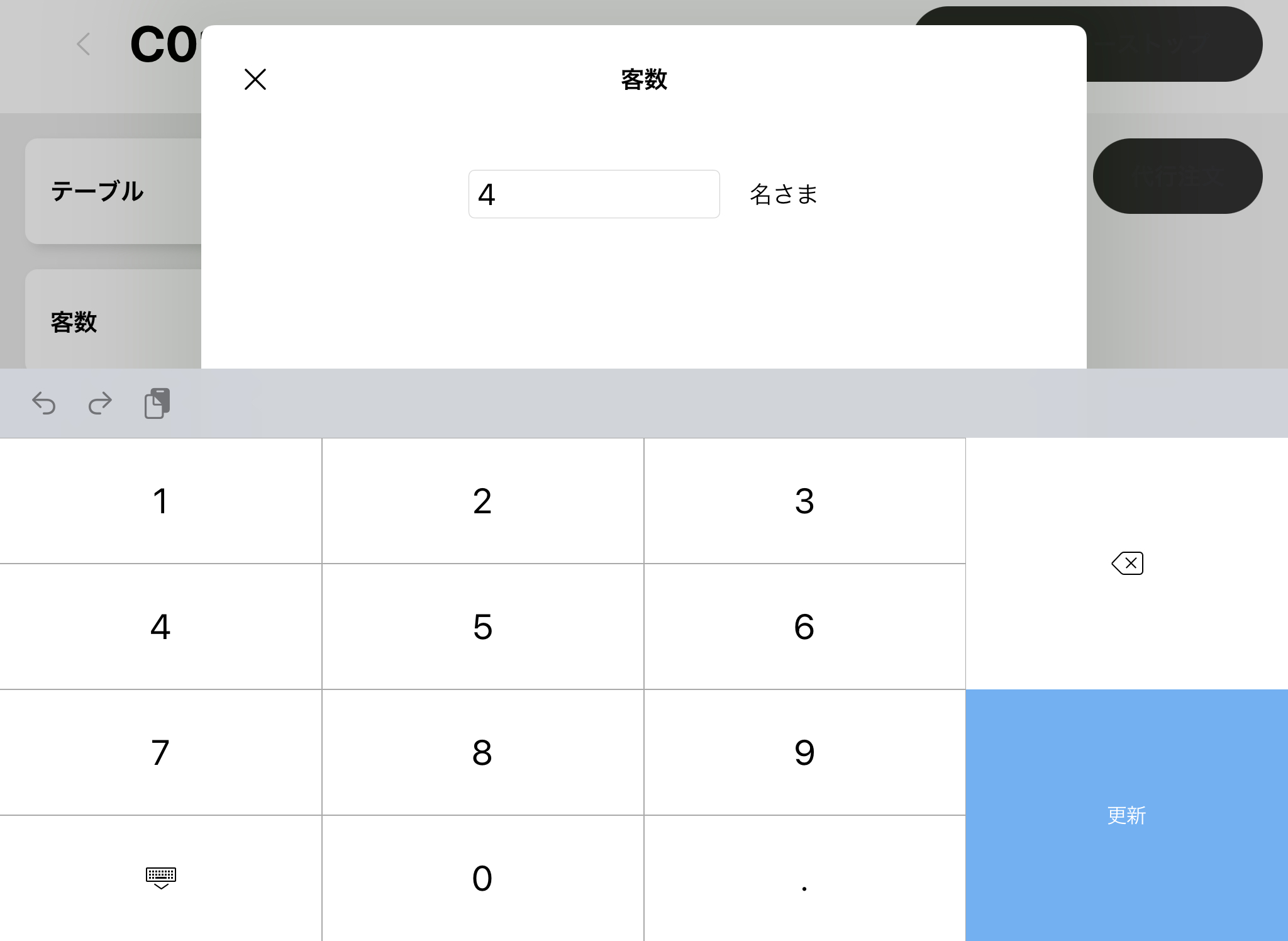 ※客数はデフォルトで1と設定されています。客数を変更しない場合は1名のテーブルとして集計されます。