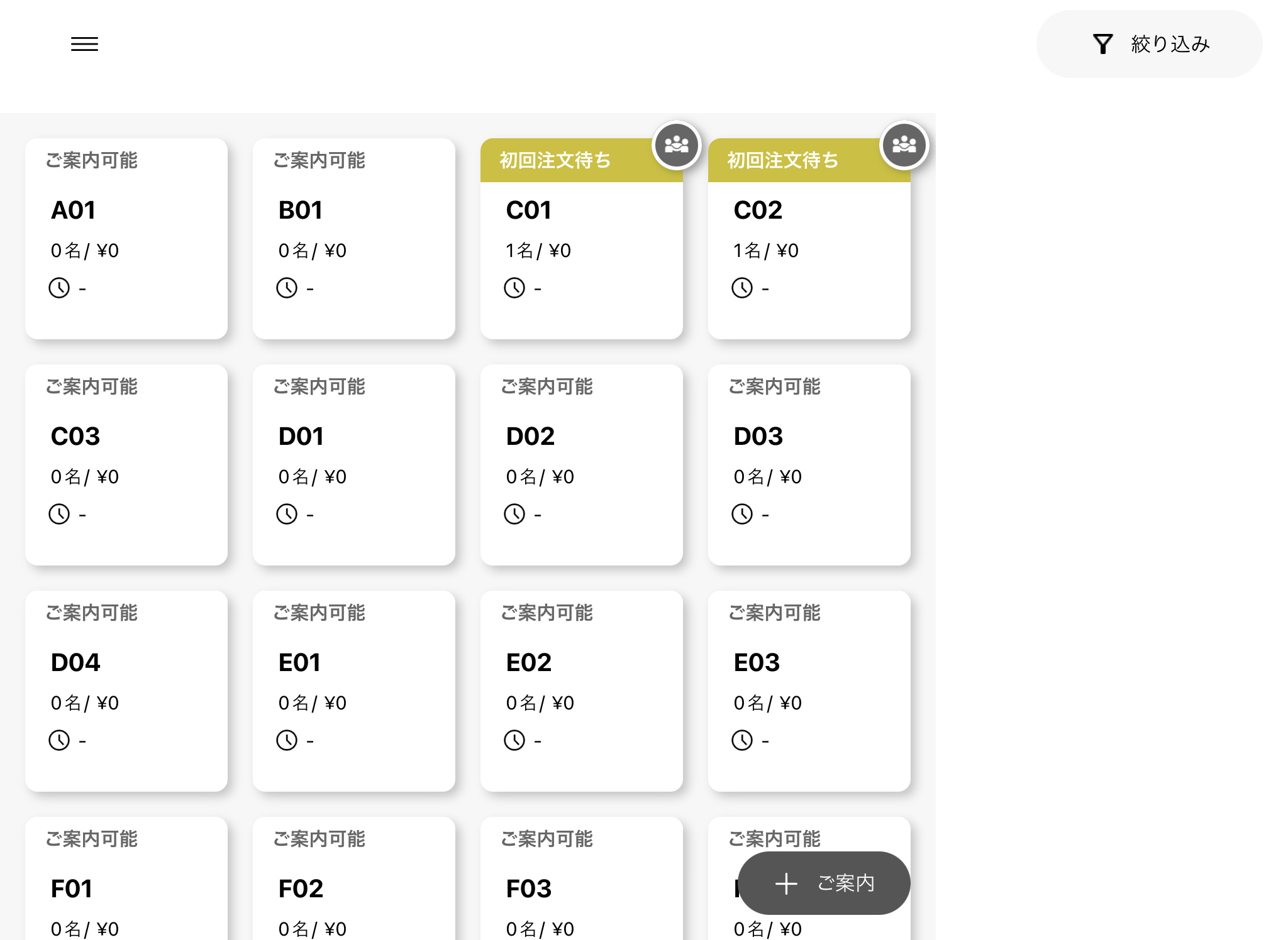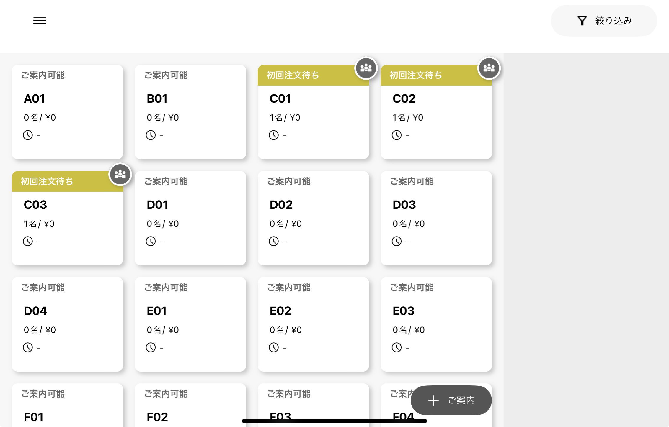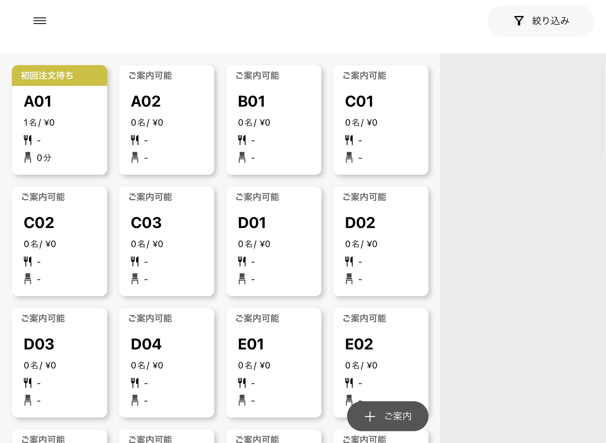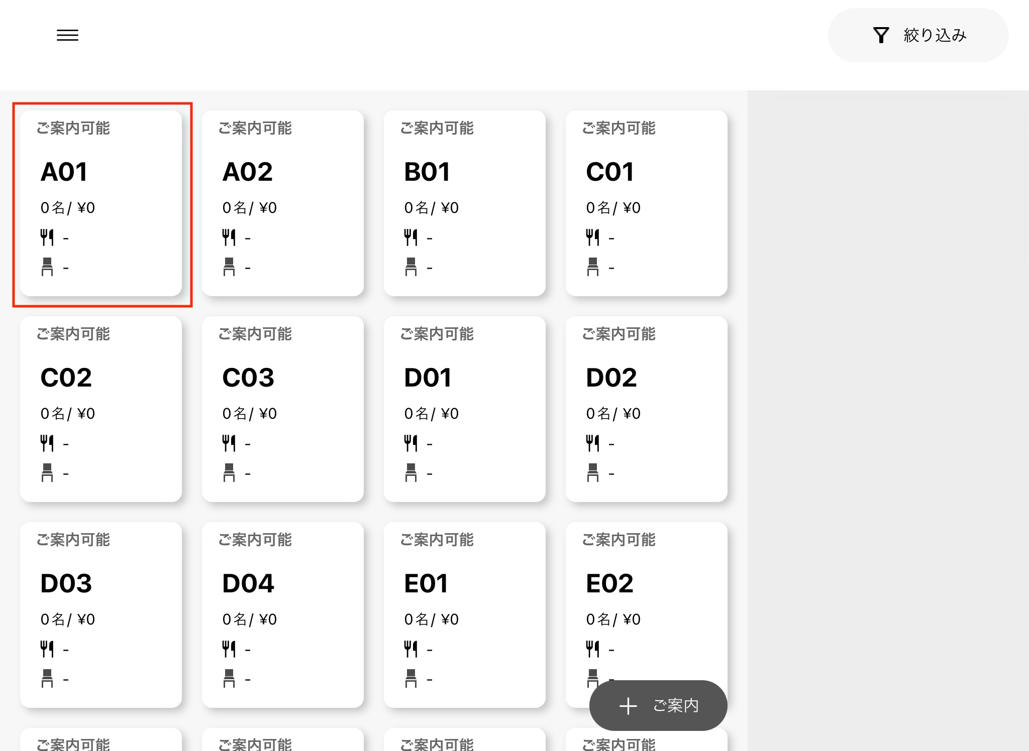 ※客数はデフォルトで1と設定されています。客数を変更しない場合は1名のテーブルとして集計されます。