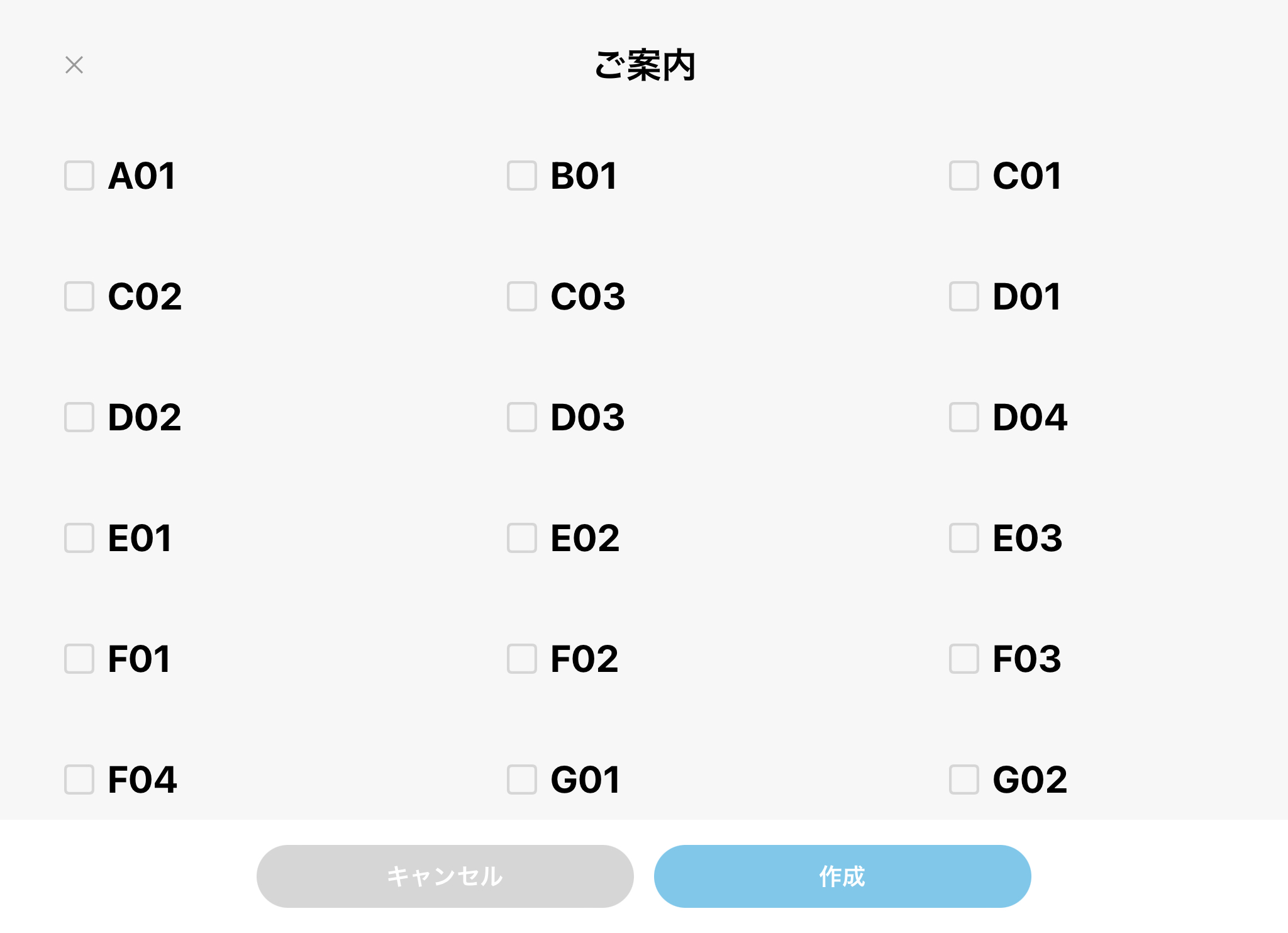 お客様をご案内するテーブルにチェックを入れて「作成」を選択します。