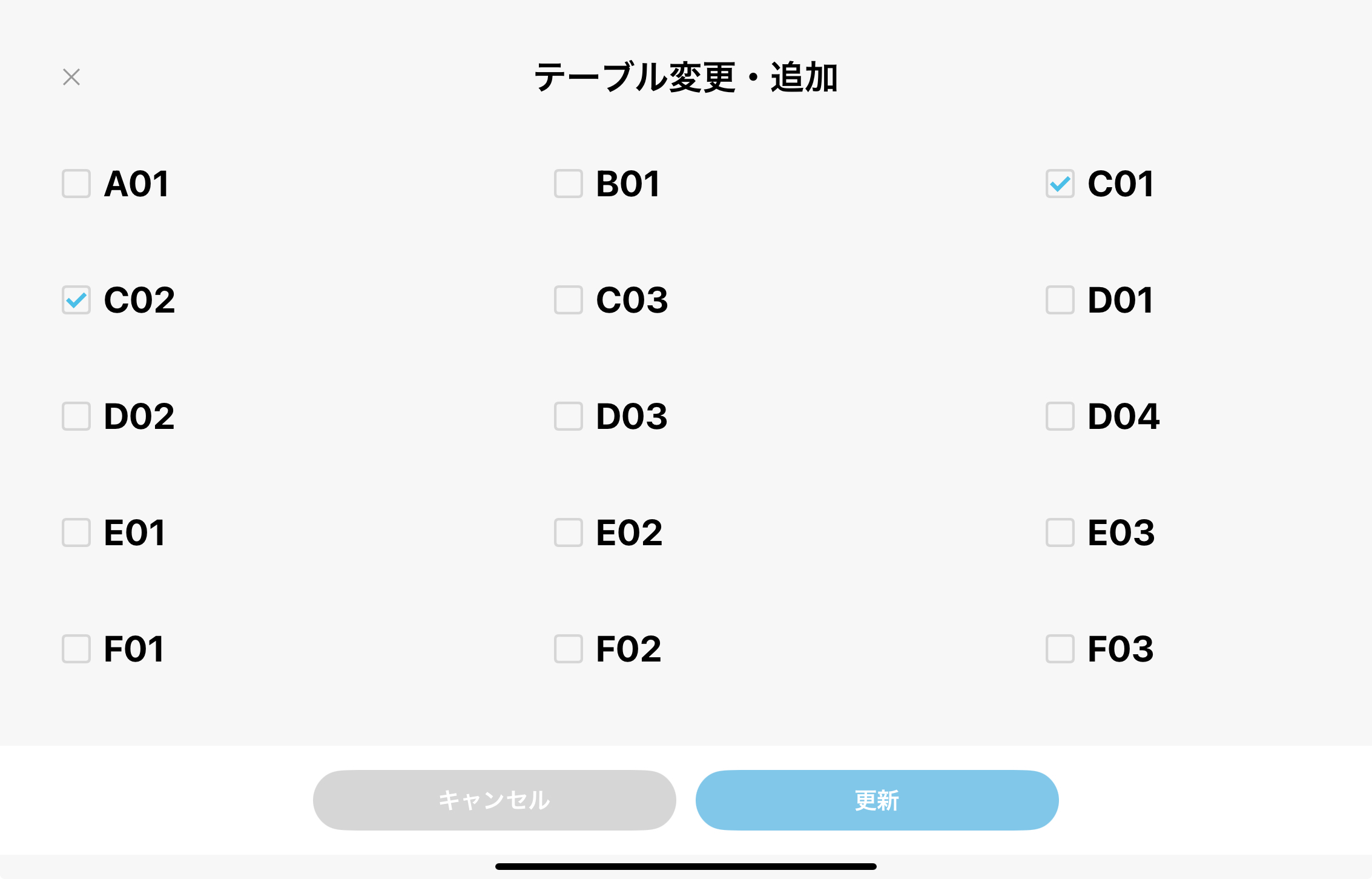 「テーブル」を選択すると、案内可能なテーブルが表示されます。
