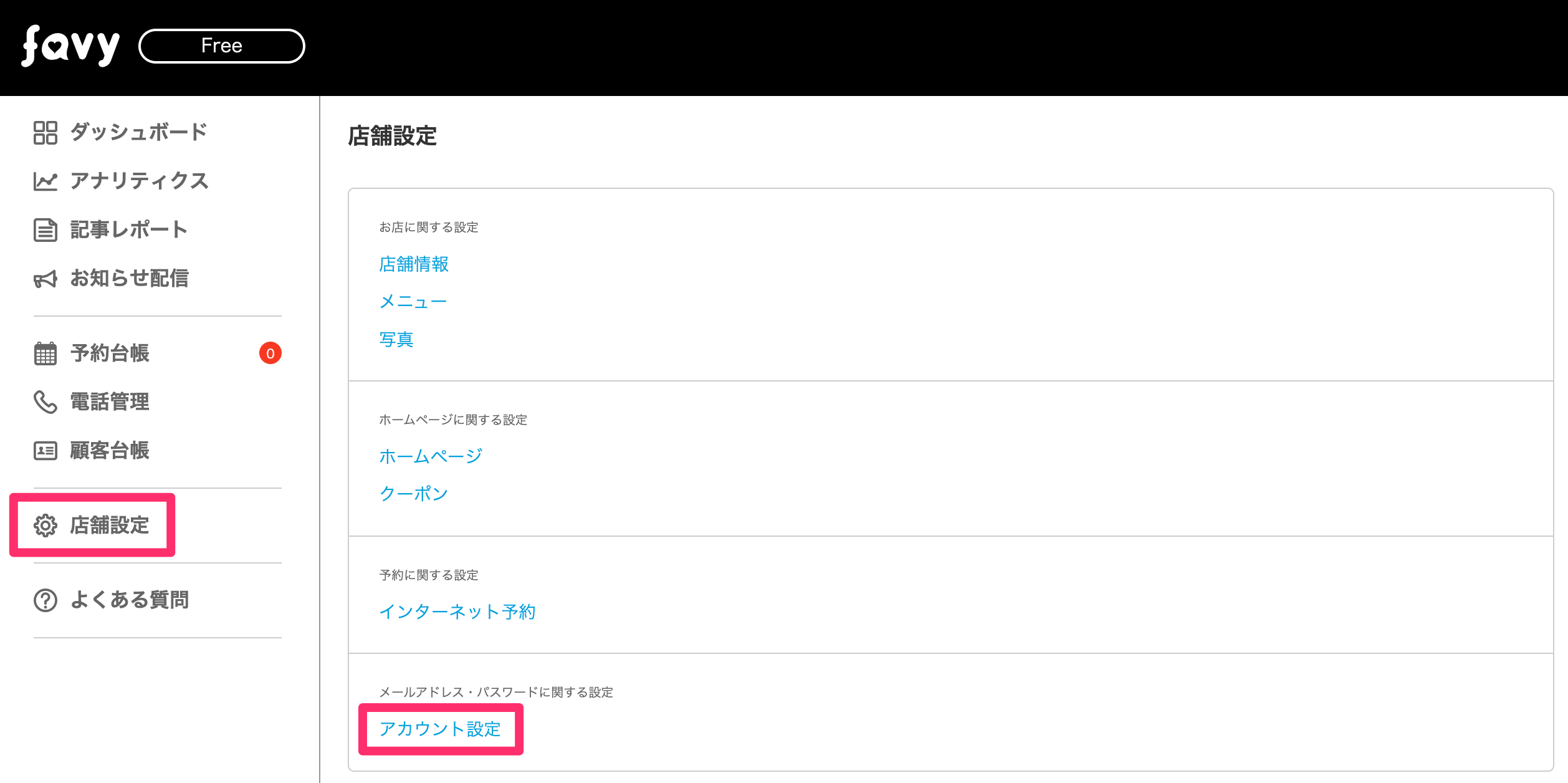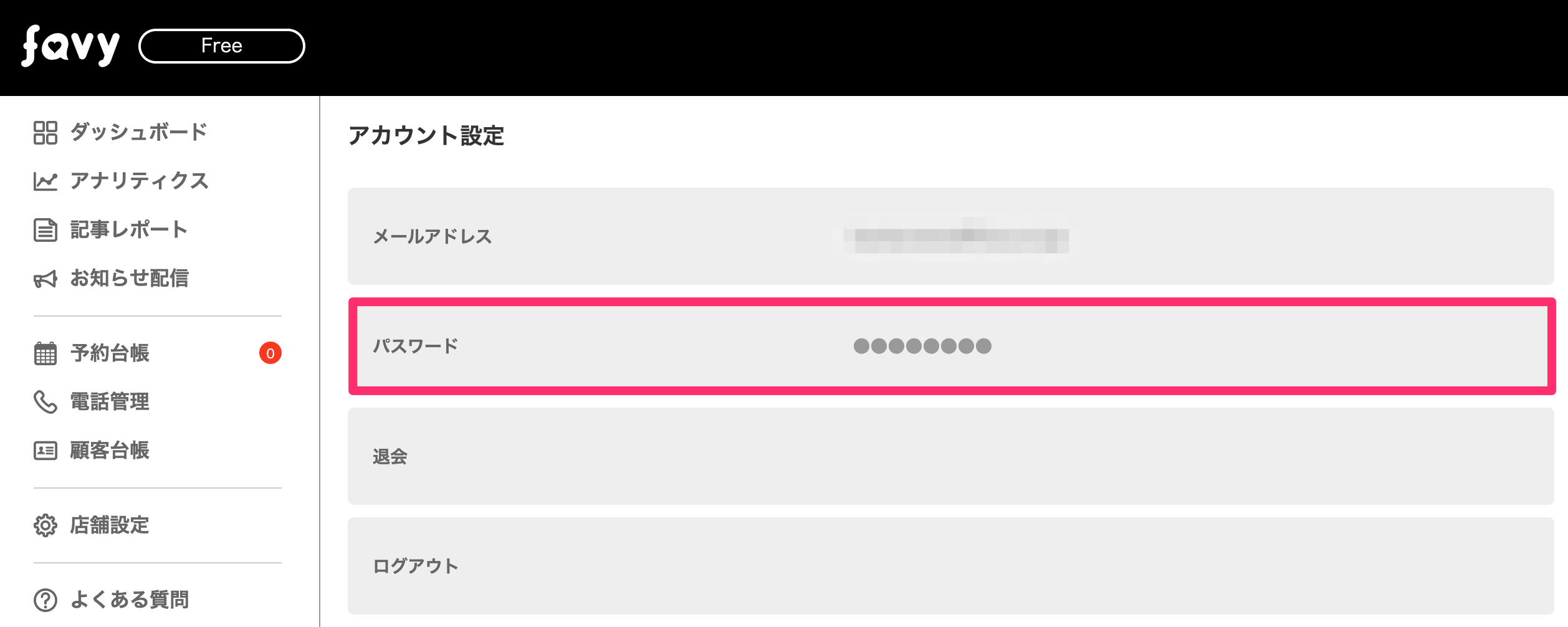 ▼favy店舗会員専用ログインページ