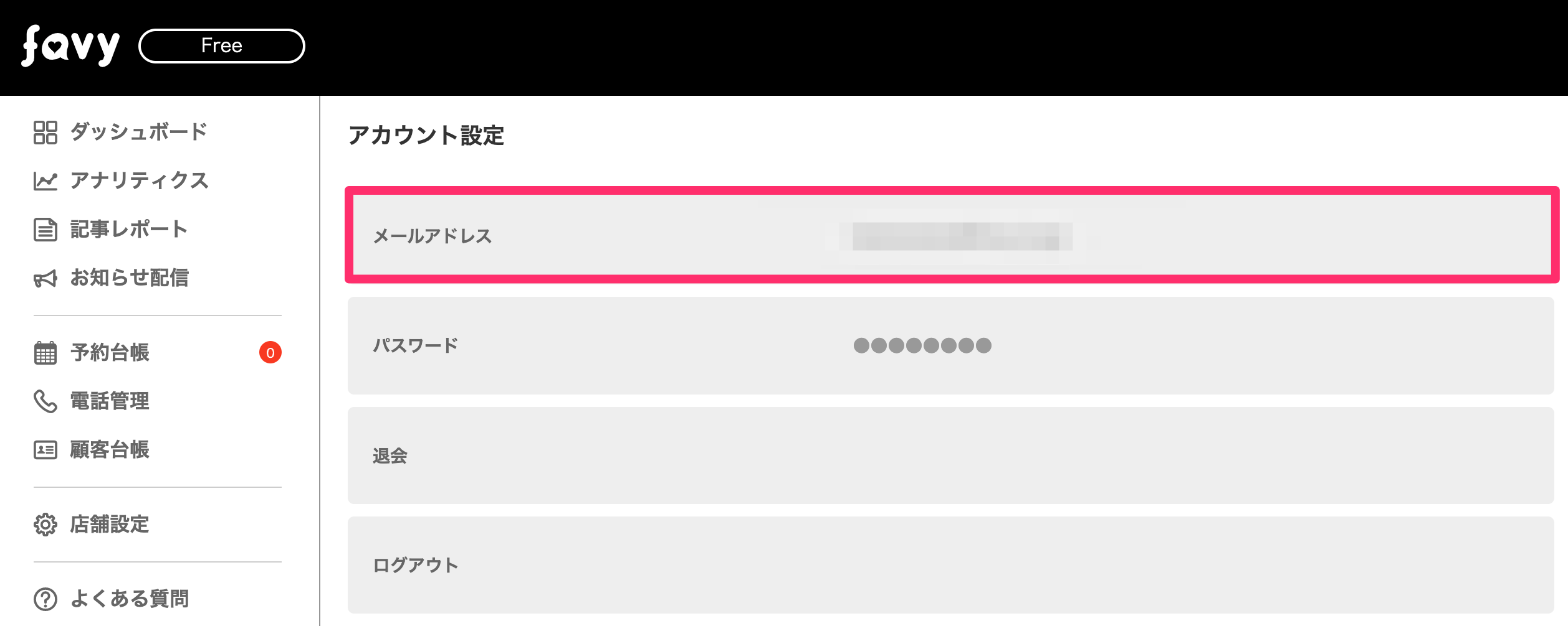▼favy店舗会員専用ログインページ