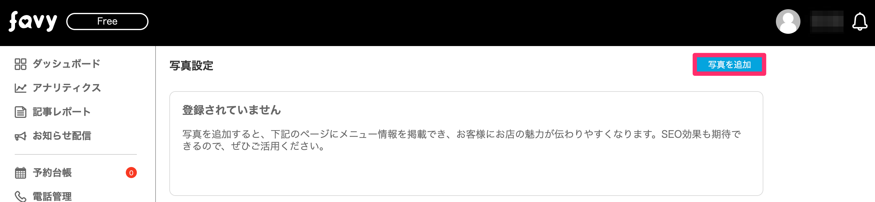 favyページを見たお客様に、お店のイメージをお知らせすることが出来ます。