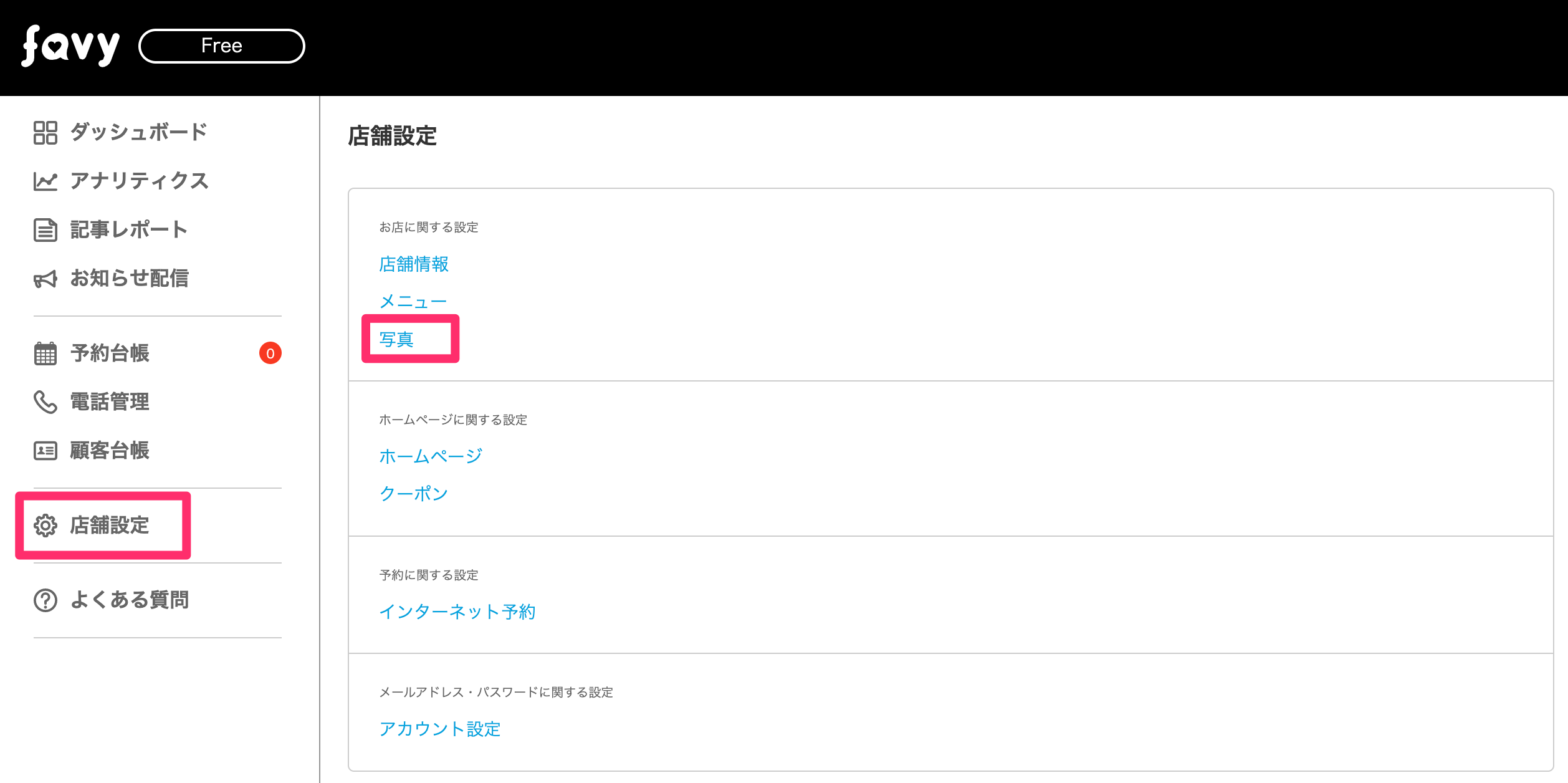 favyページ・店舗情報ページの両方に反映されます。