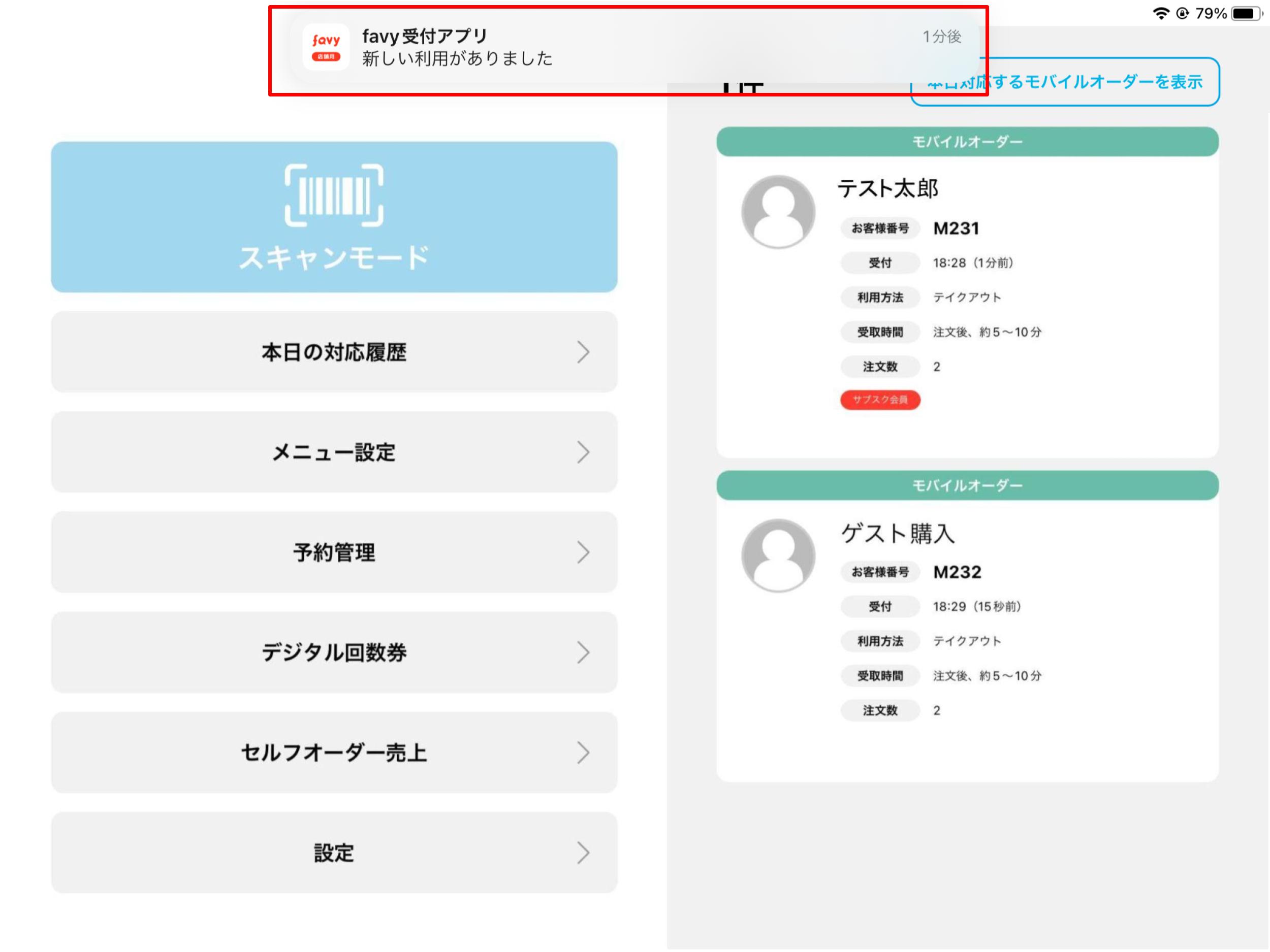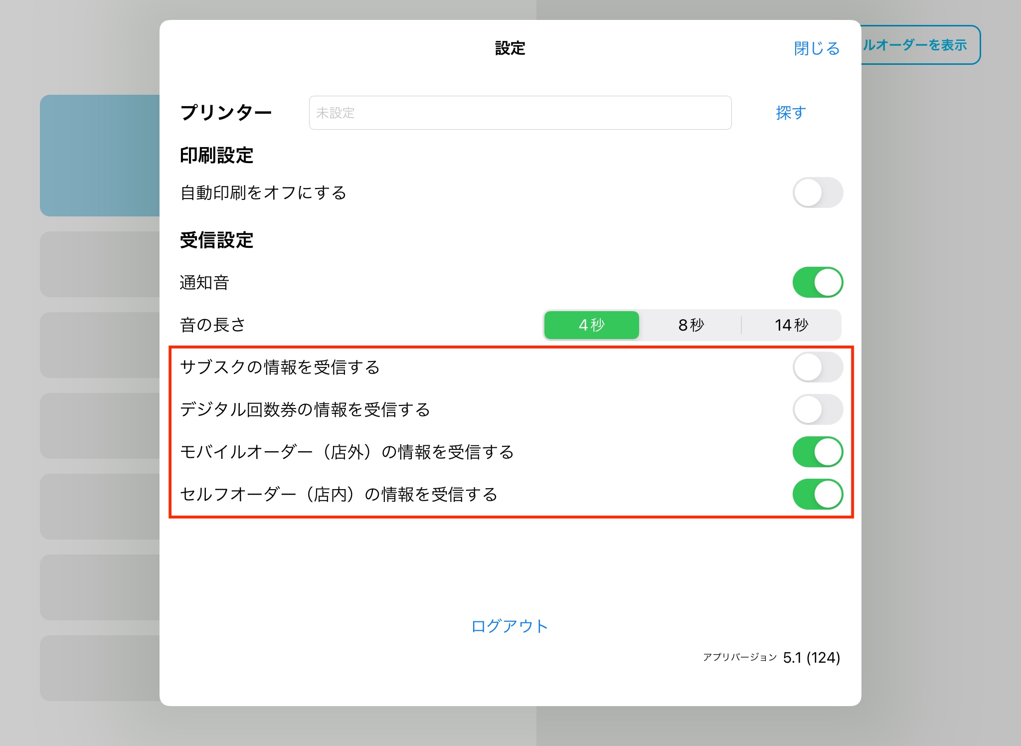受付アプリにオーダーが表示されない場合、下記の手順をお試しください。