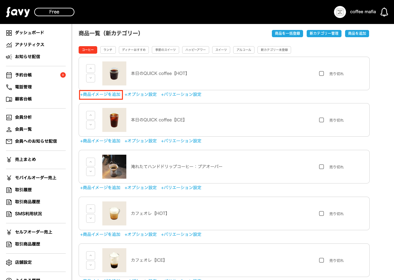 画像を設定したい商品の下にある「商品イメージを追加」を選択します。