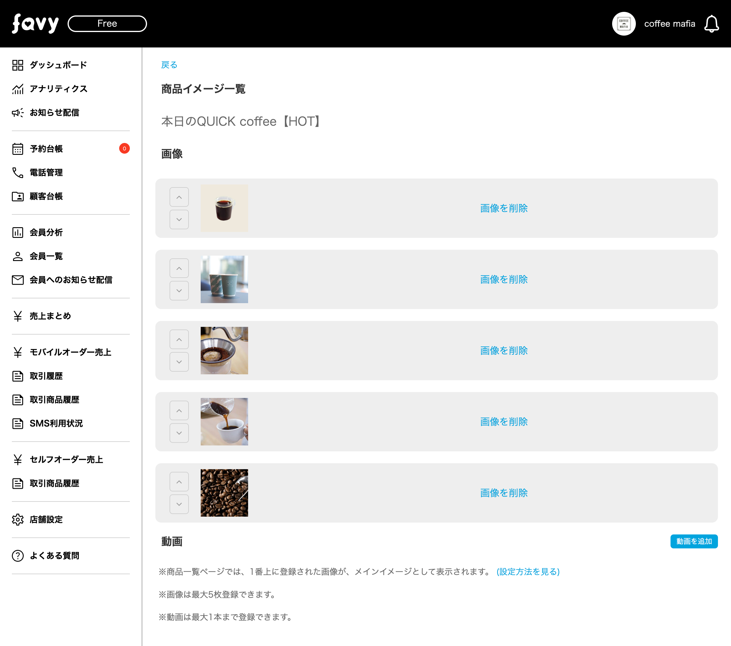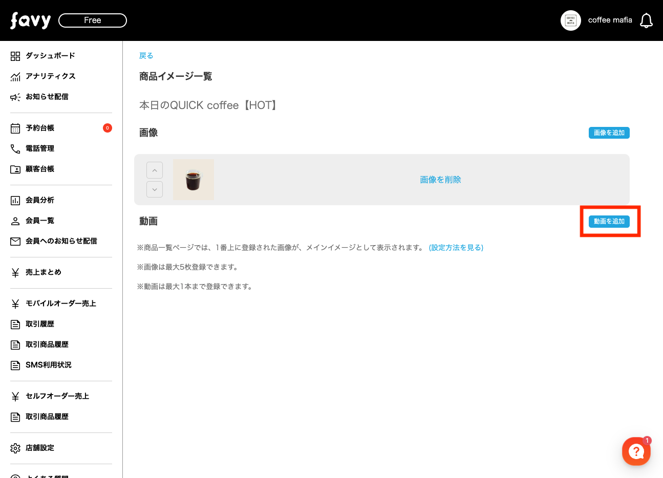 登録した商品に対して画像・動画を設定することができます。