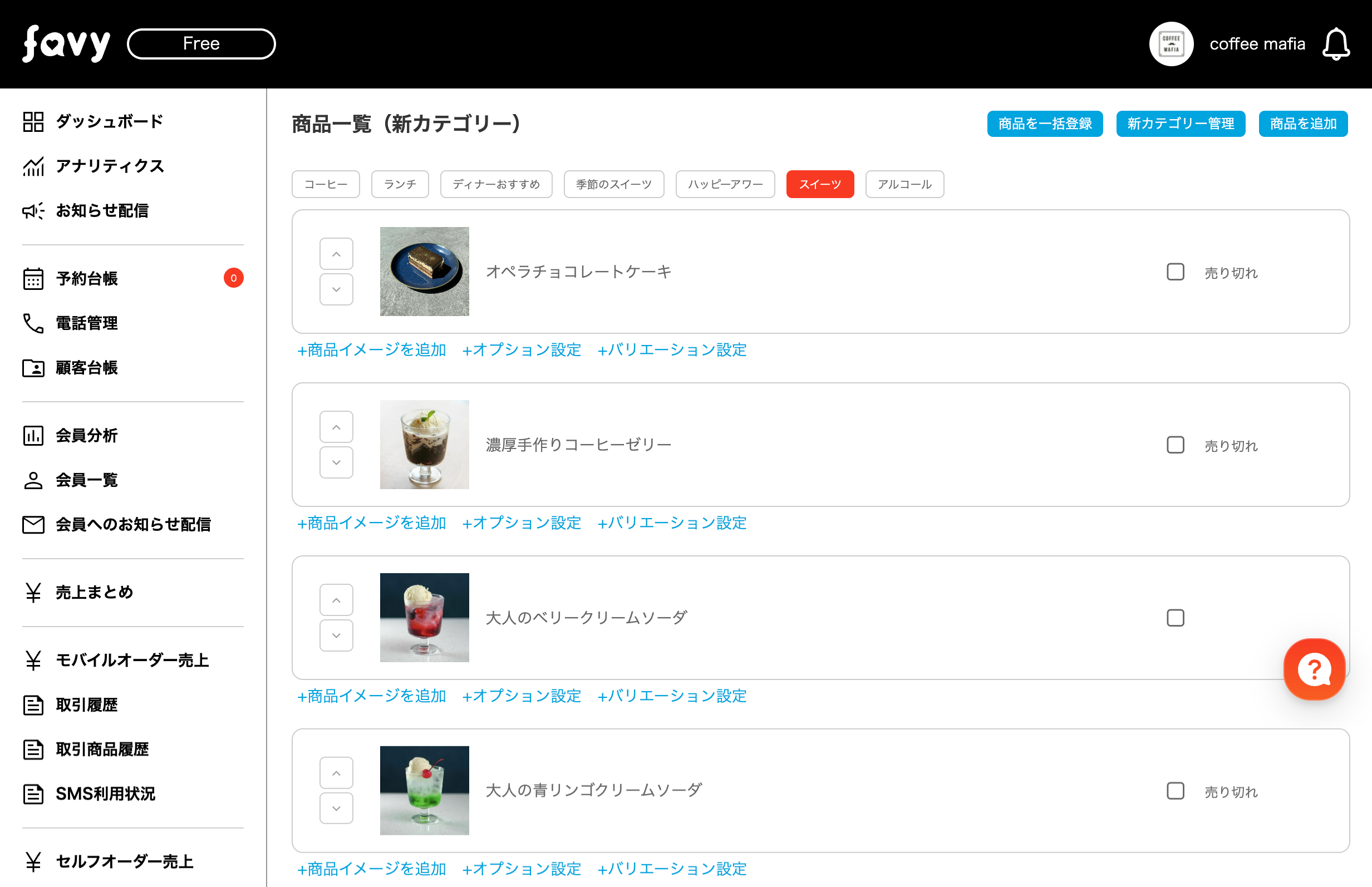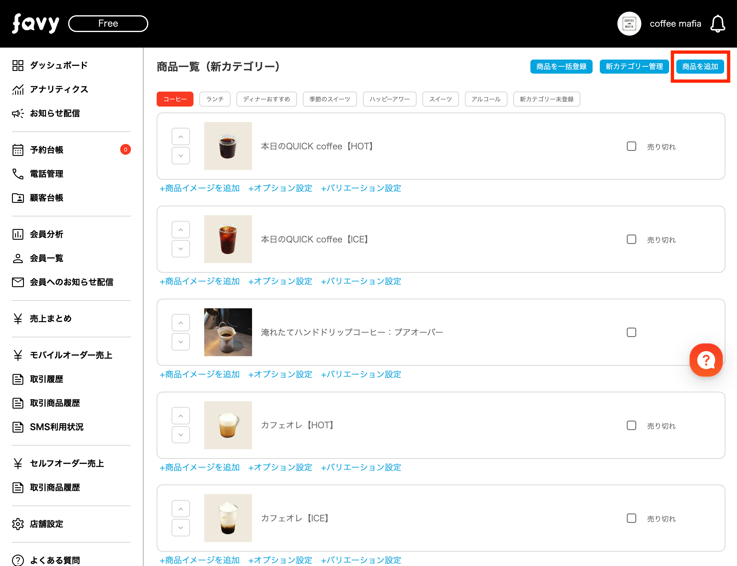 商品は最後に登録したものが一番上に表示され、この表示順がお客様の画面にも反映されます。
