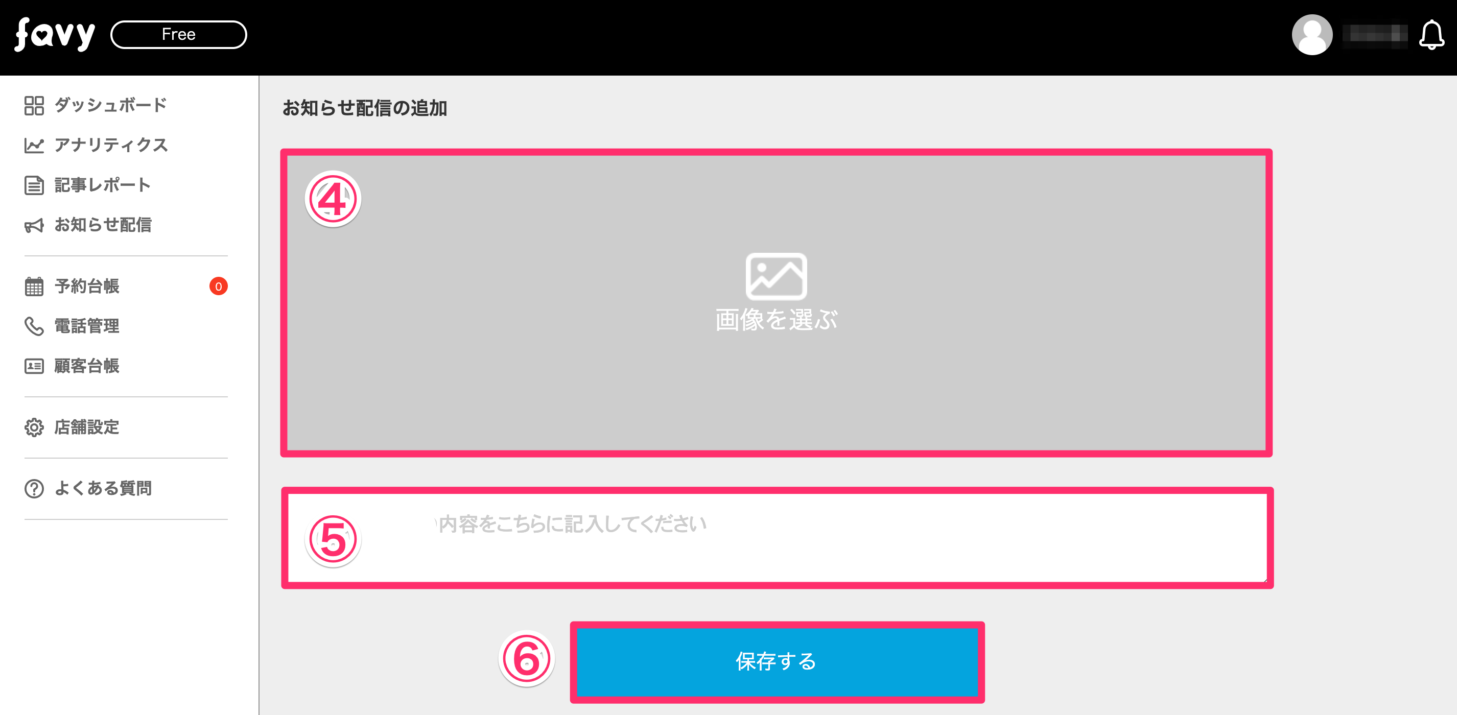 5. お知らせ内容を入力する。