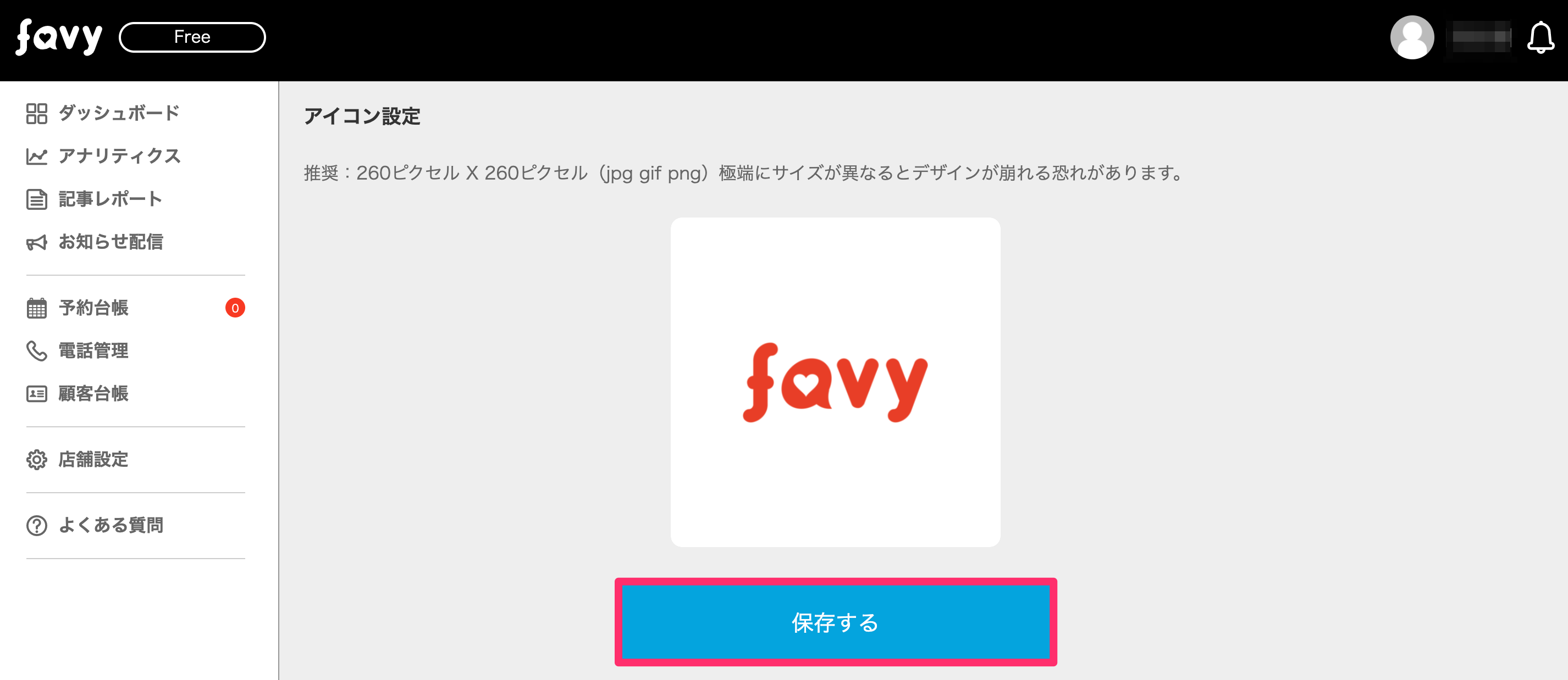 favyのアイコンは、アップロードされたアイコン画像を自動で縦横同じ大きさになるよう、自動でリサイズ(サイズ補正)し、丸型に切り抜かれるようになっています。