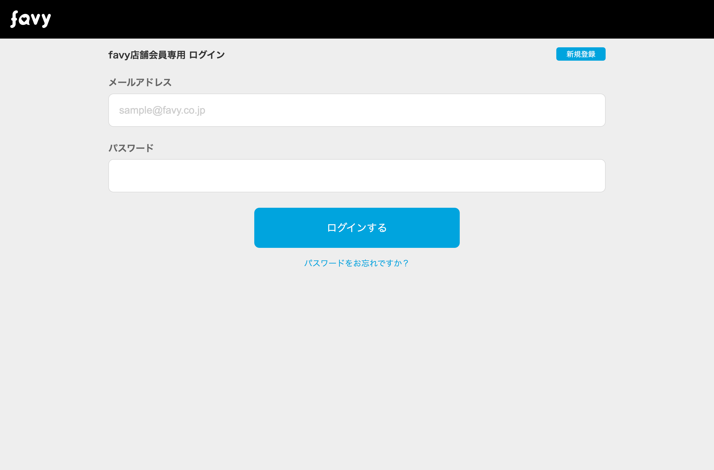 メールアドレスやパスワードがわからない場合はfavy担当者にご確認ください。