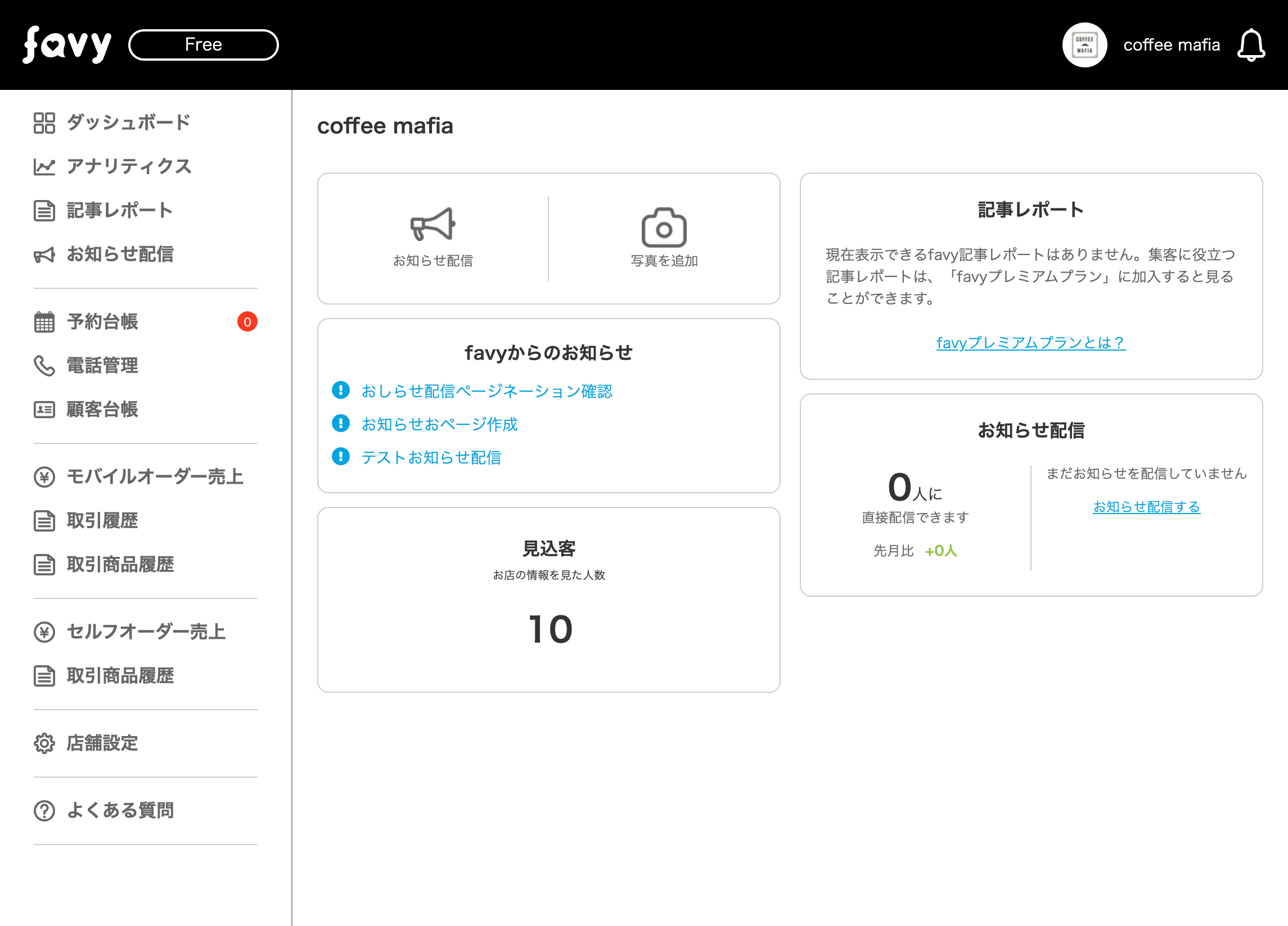 ダッシュボードが表示されます。