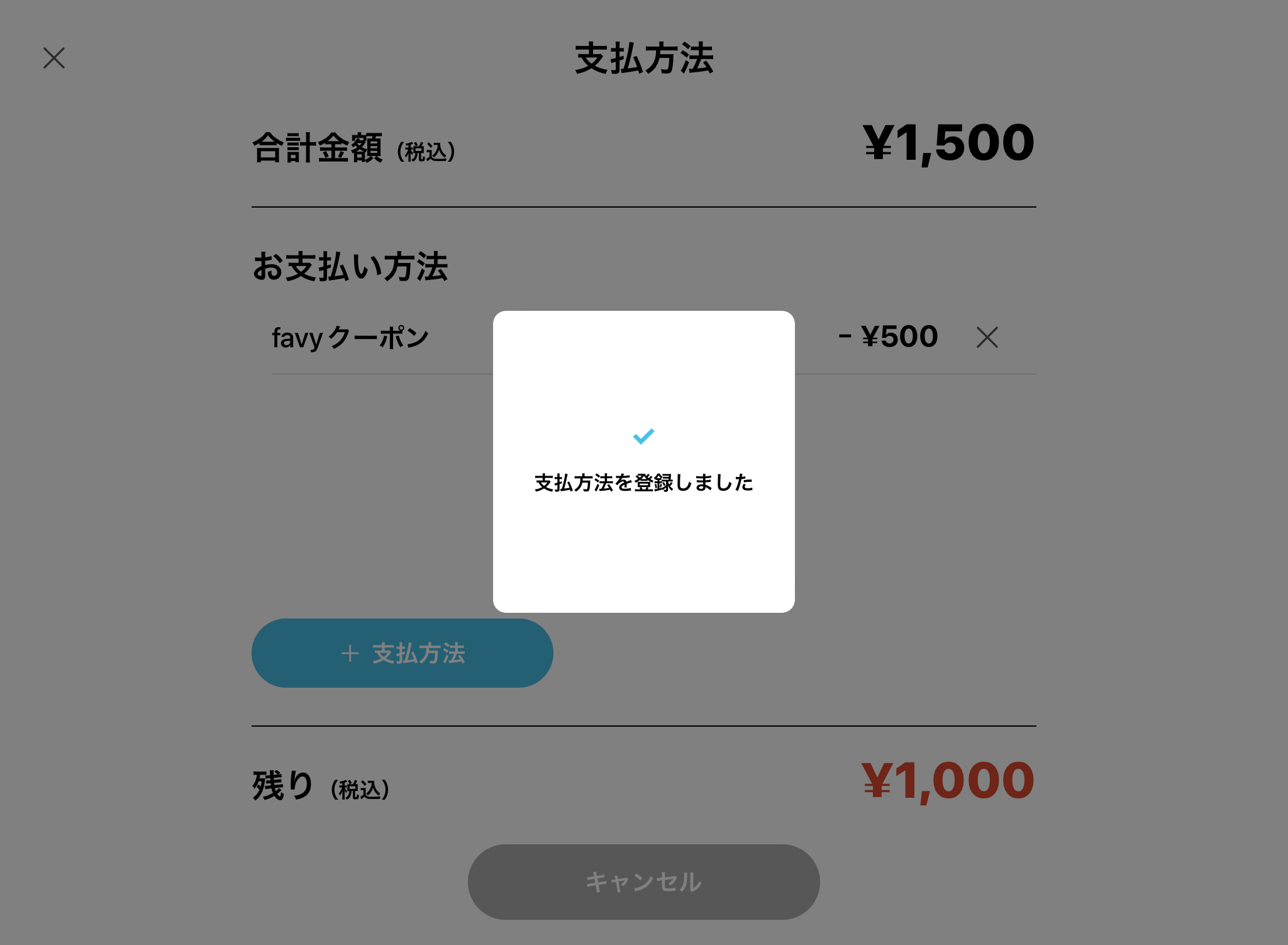1. 追加し終わると、該当の支払い方法が追加され、合計金額がマイナスされていることが確認できます。