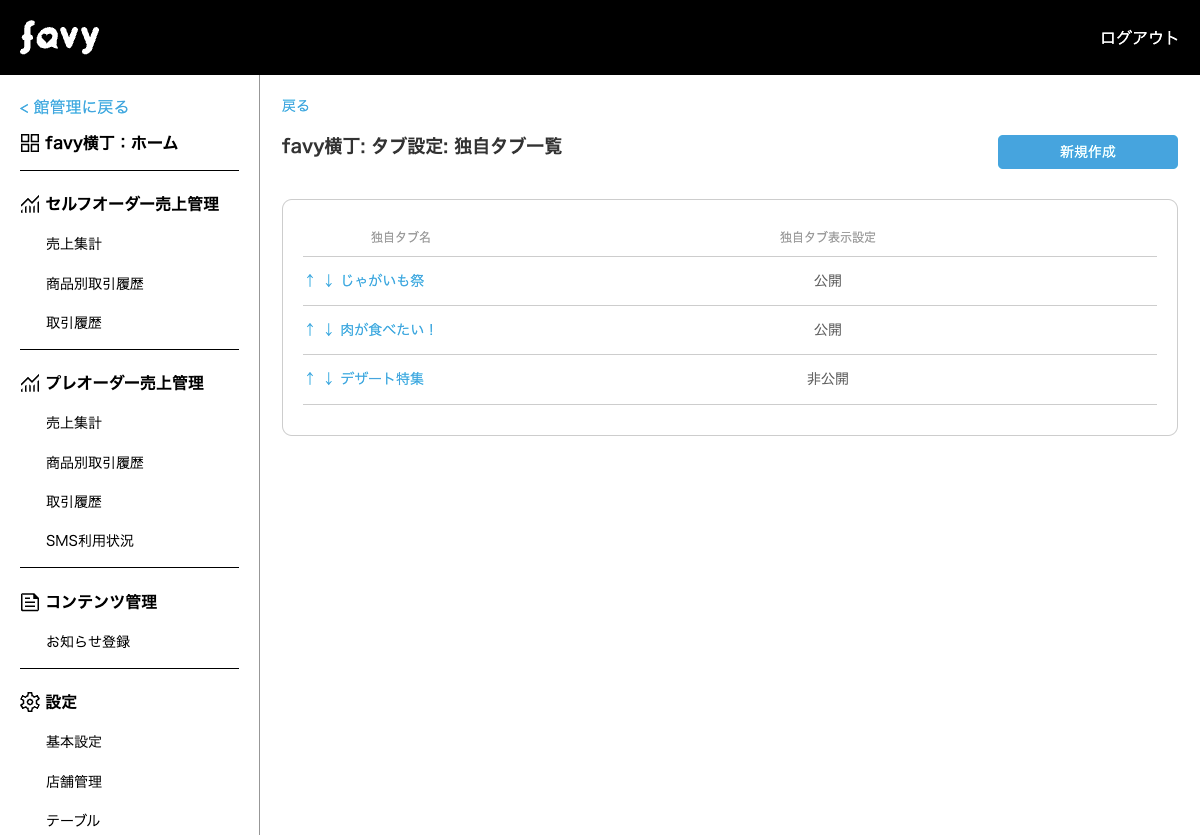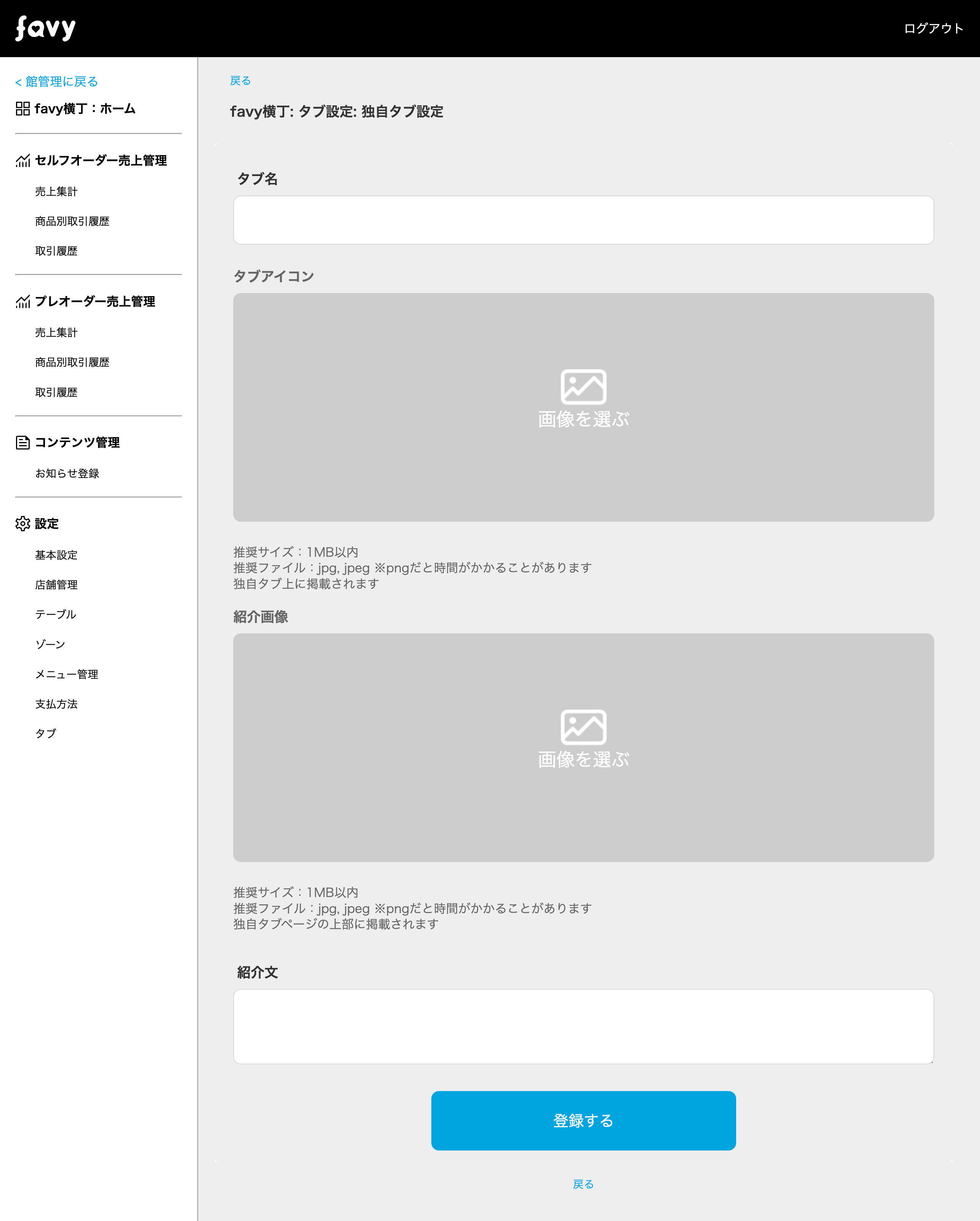 店舗タブとは別に、自由に編集できる「独自タブ」を設定することができます。