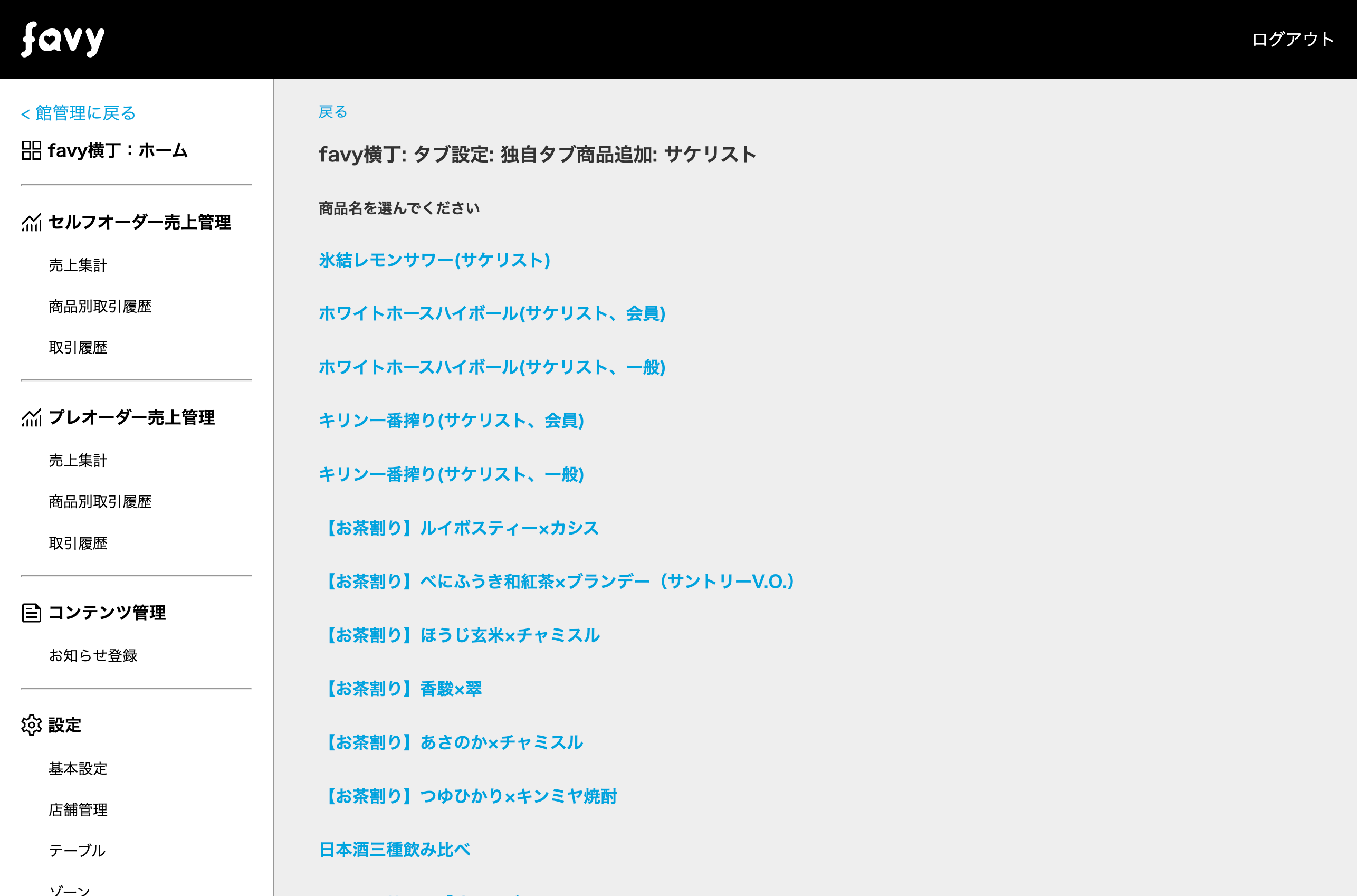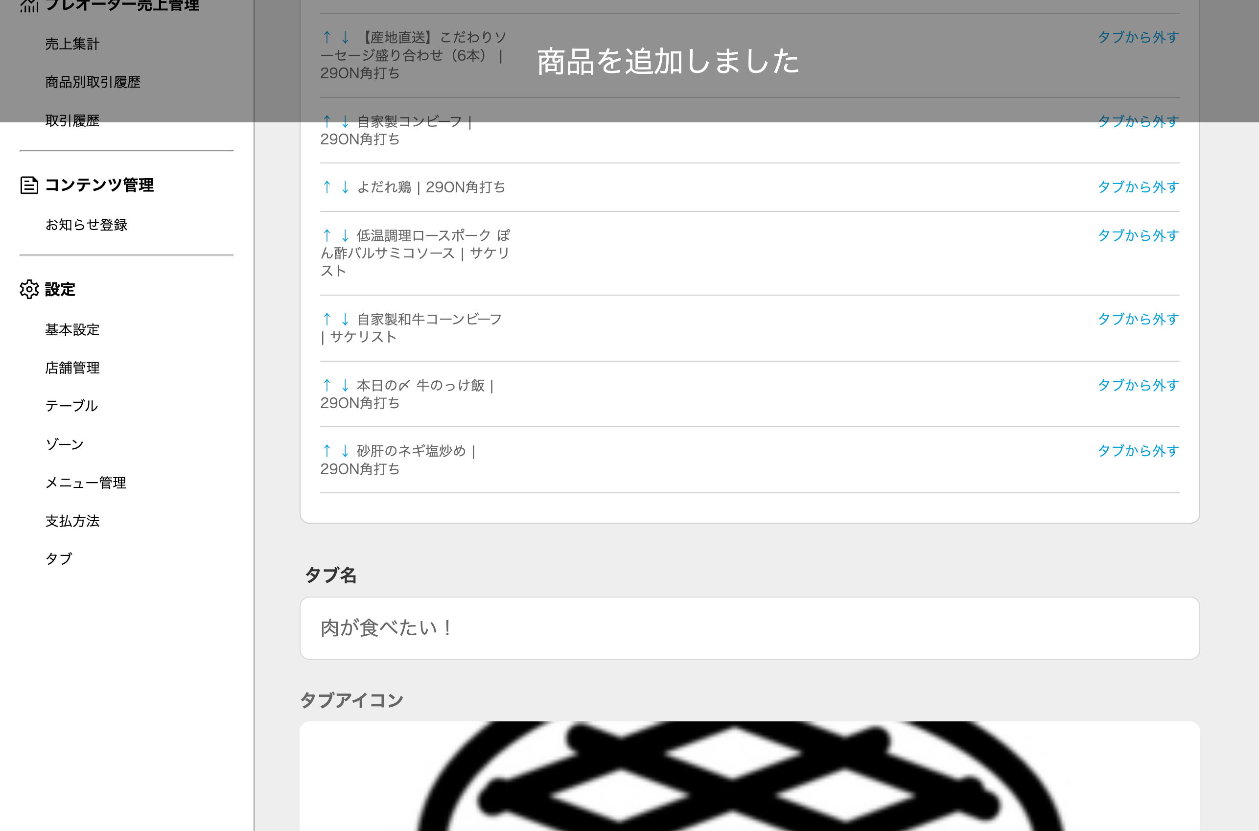 登録したいメニューを選択すると、商品が独自タブに追加されます。
