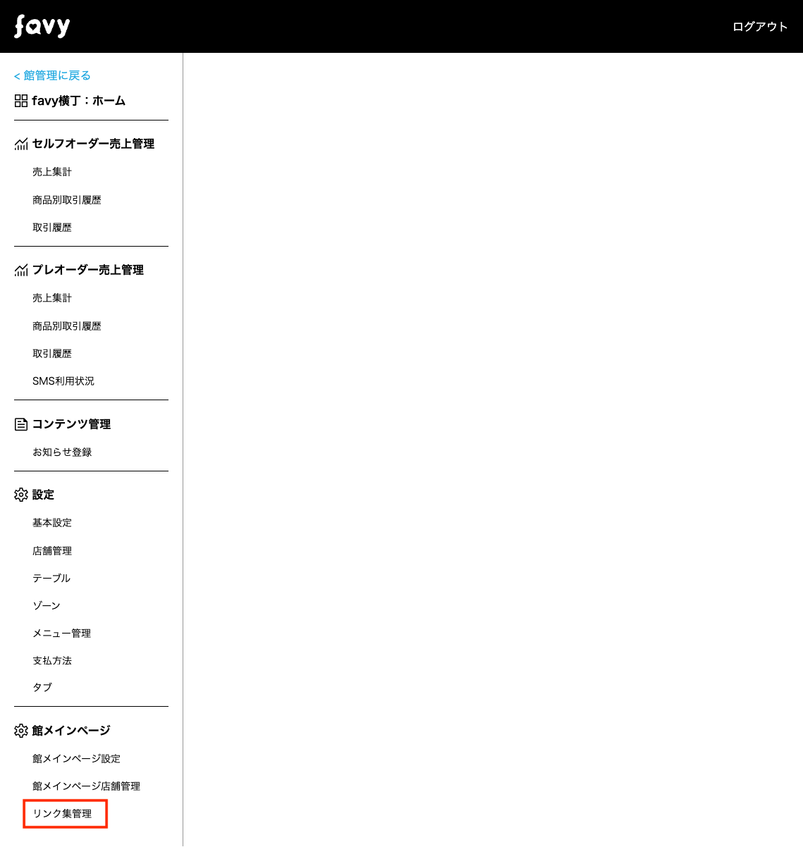 館管理画面のトップページから、「リンク集管理」を選択します。