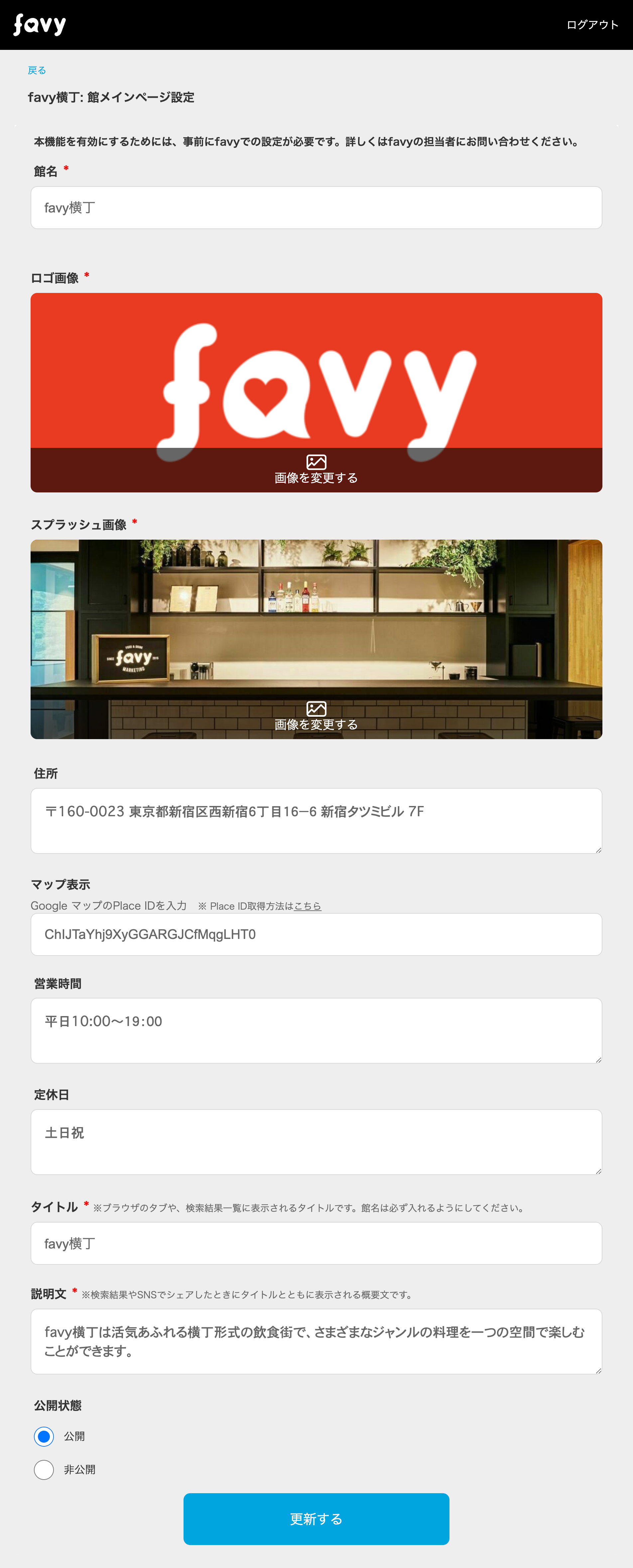 ※メインページの作成・編集は本画面より行えますが、公開するには事前にfavyでの設定が必要です。詳しくはfavy担当者にお問い合わせください。
