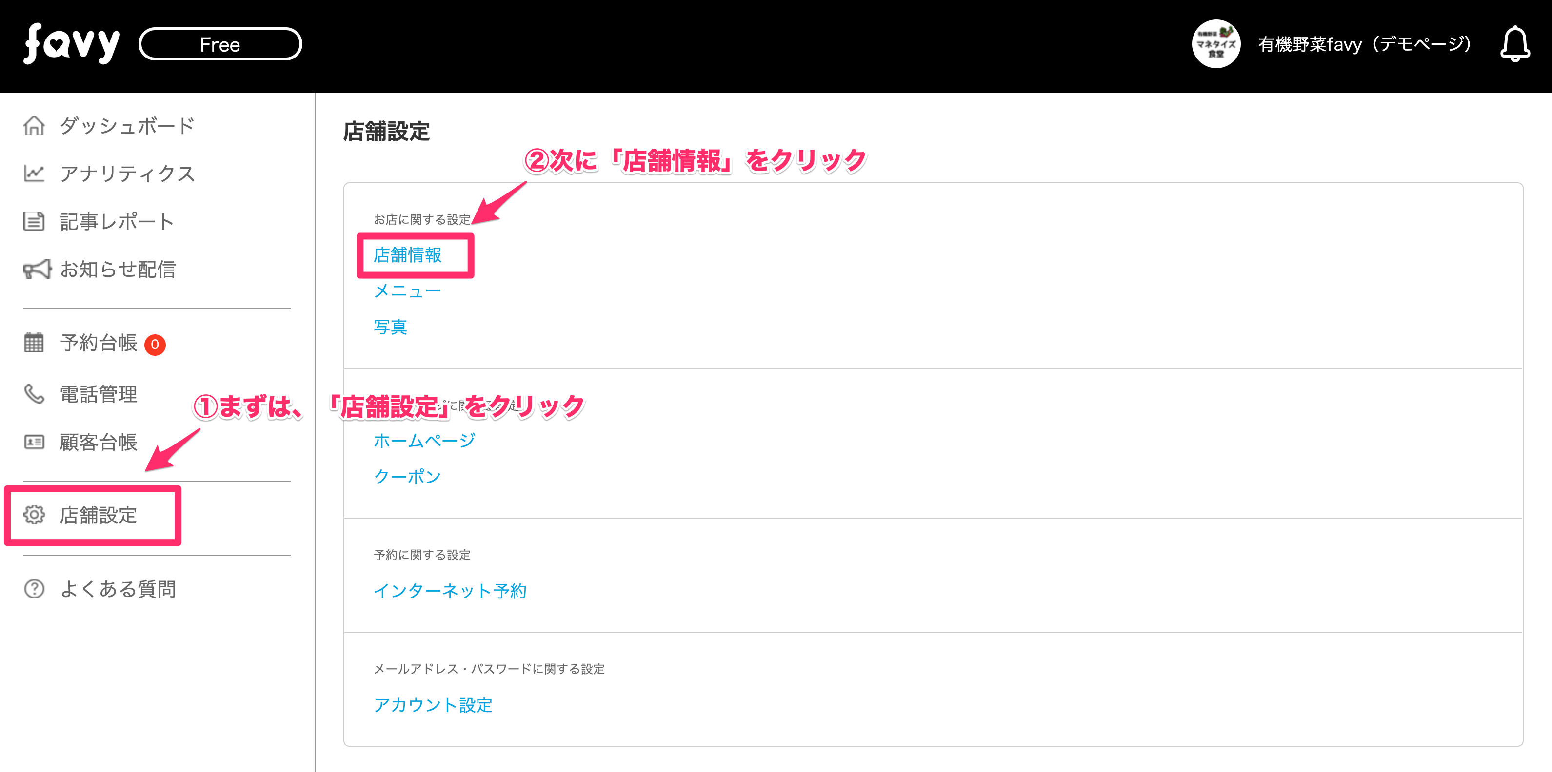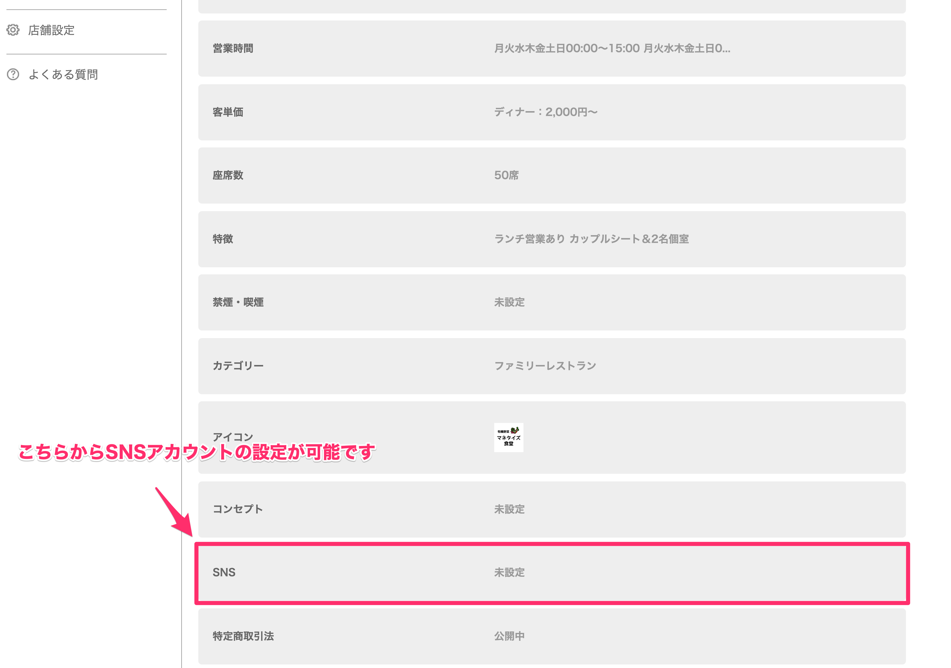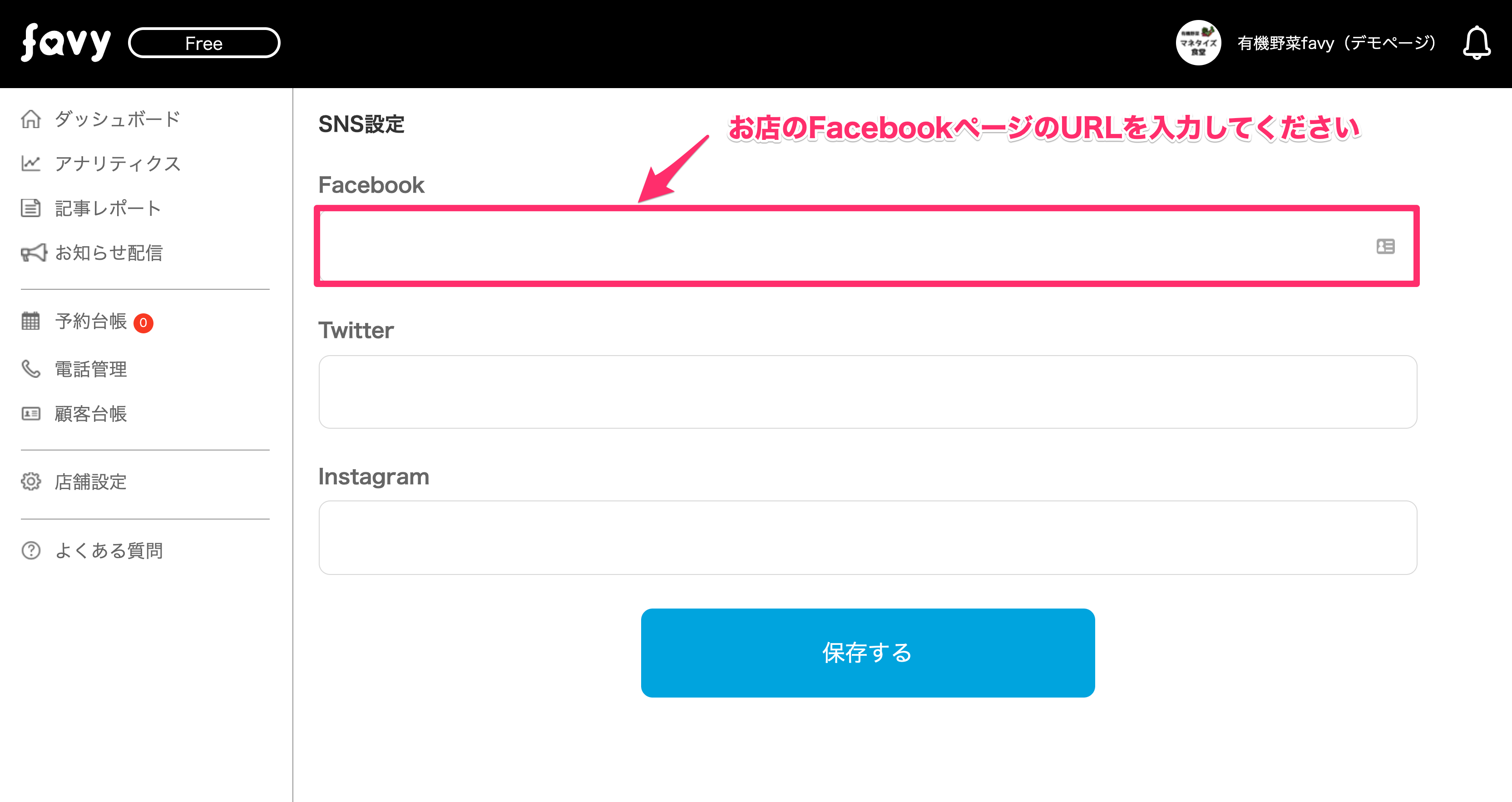 以下の手順にて、favyページ(ホームページ)にSNSアカウントを表示することが可能です。