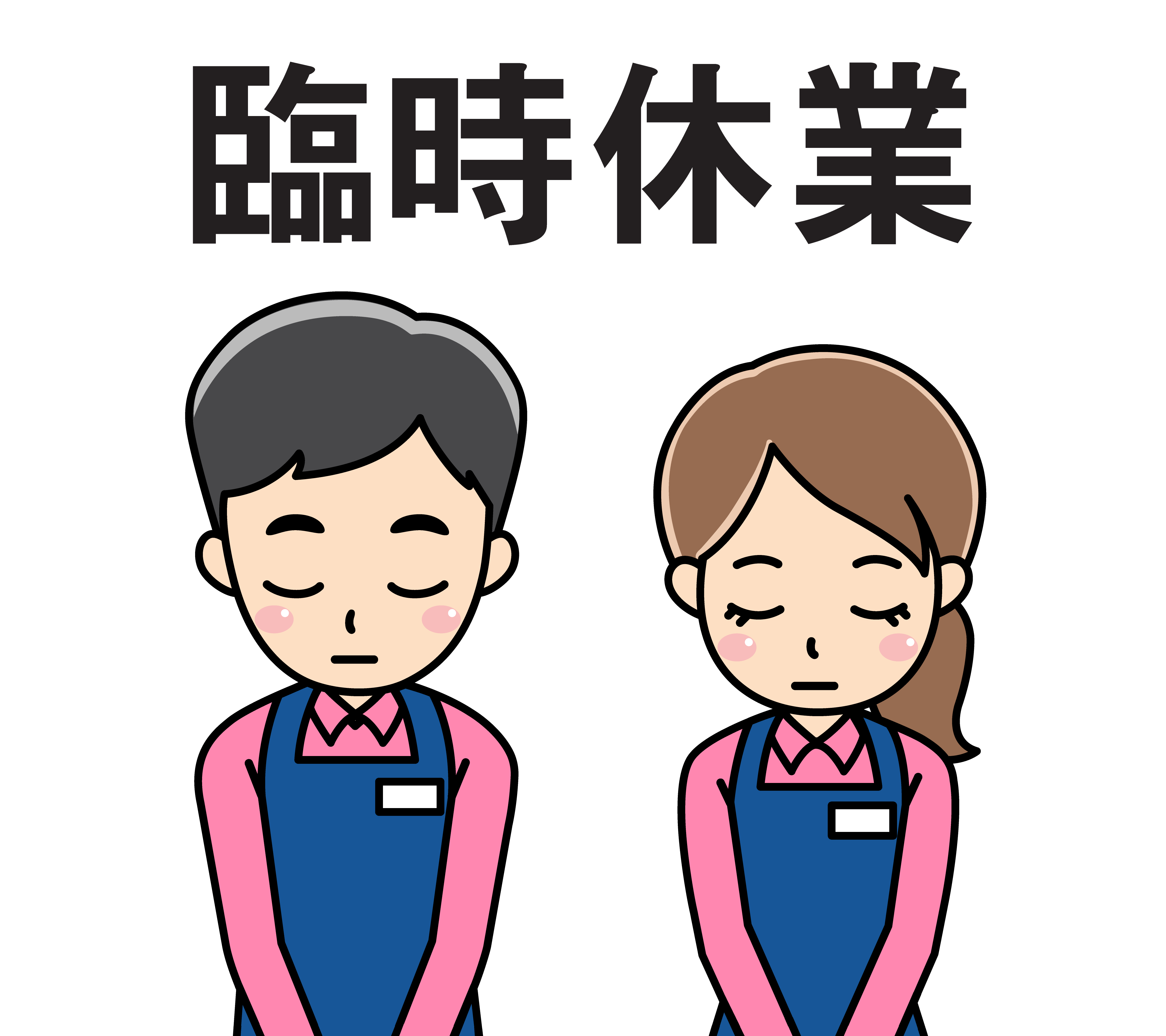 急遽スタッフの欠員が出たり、台風などの影響でやむを得ず、臨時休業にする事もあるでしょう。