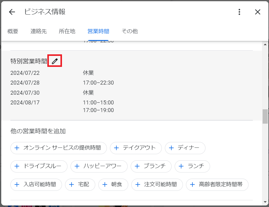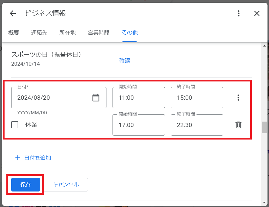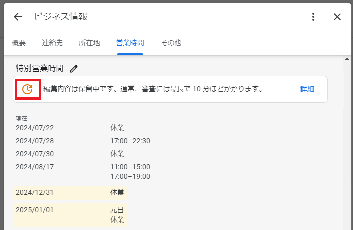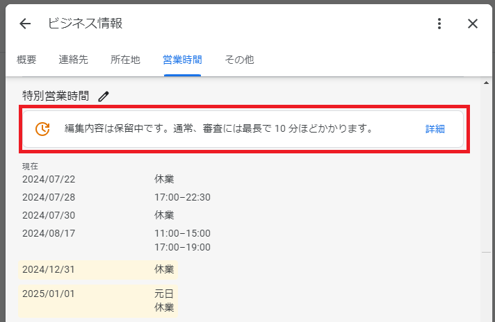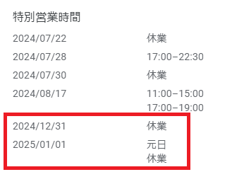 Googleビジネスプロフィールでは、「特別営業日」の設定をする事で、営業時間の変更や、臨時休業日を設定する事ができます。