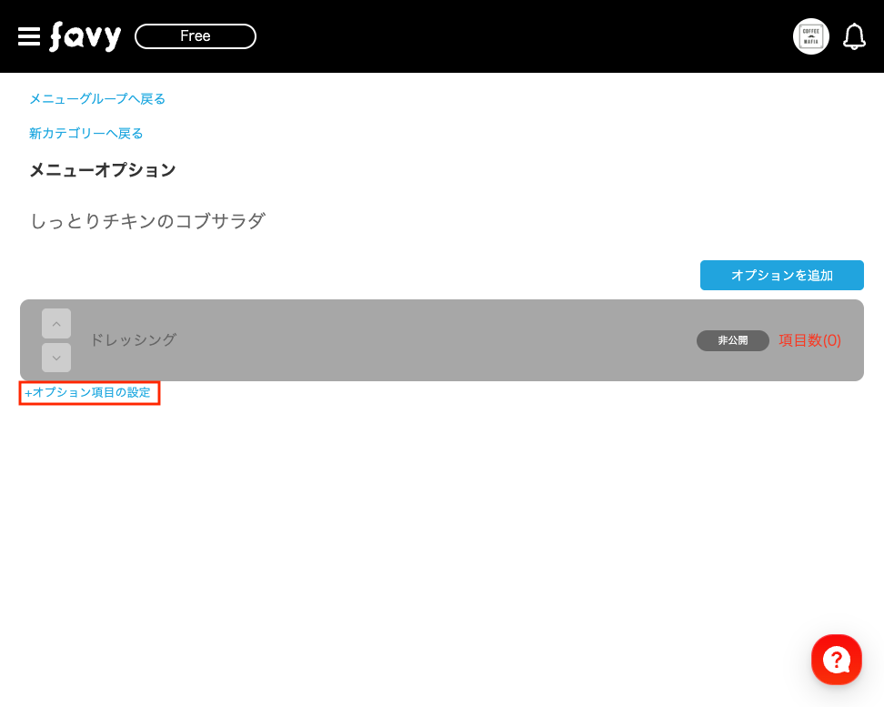 登録されたオプションの下にある「オプション項目の設定」を選択します。