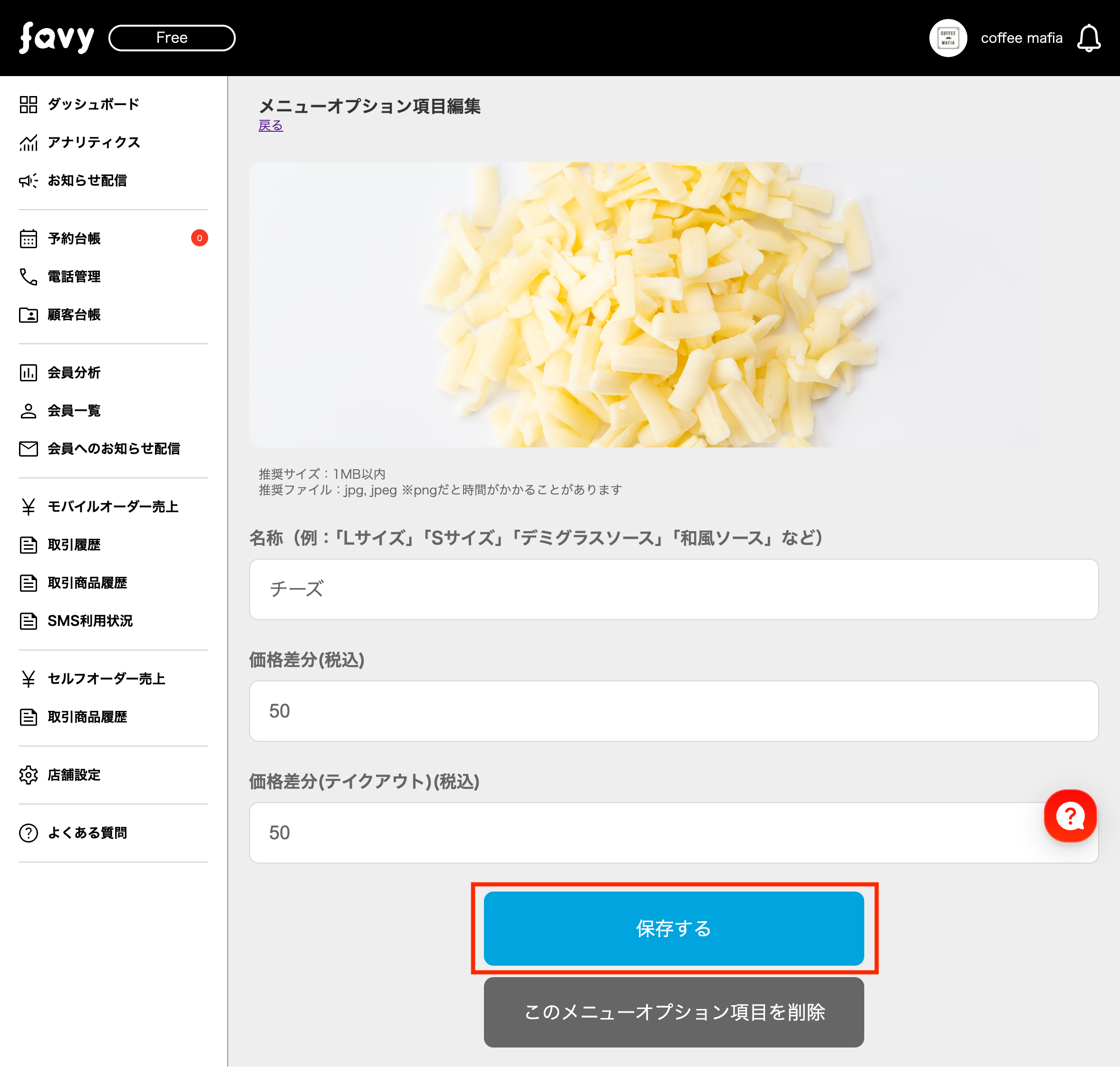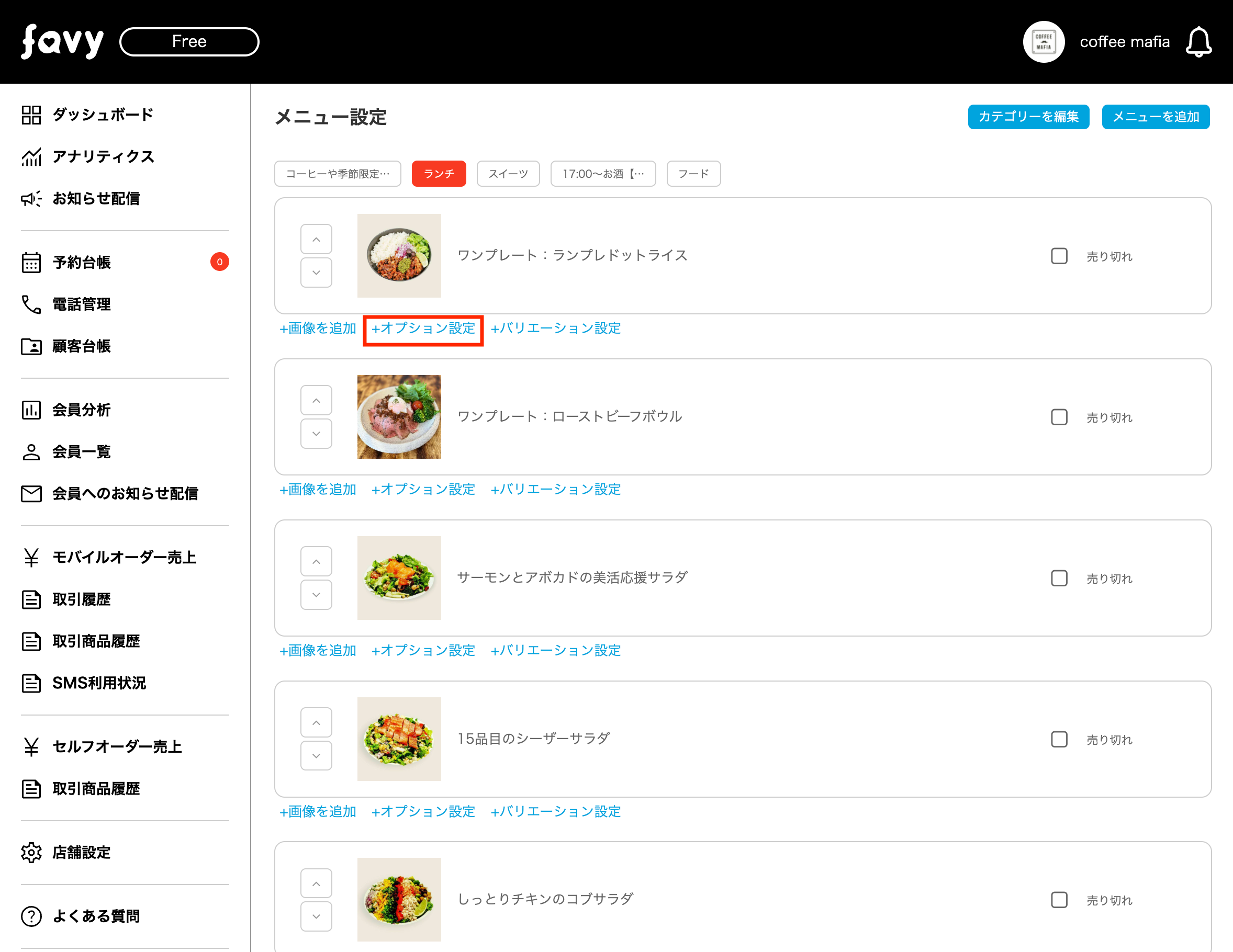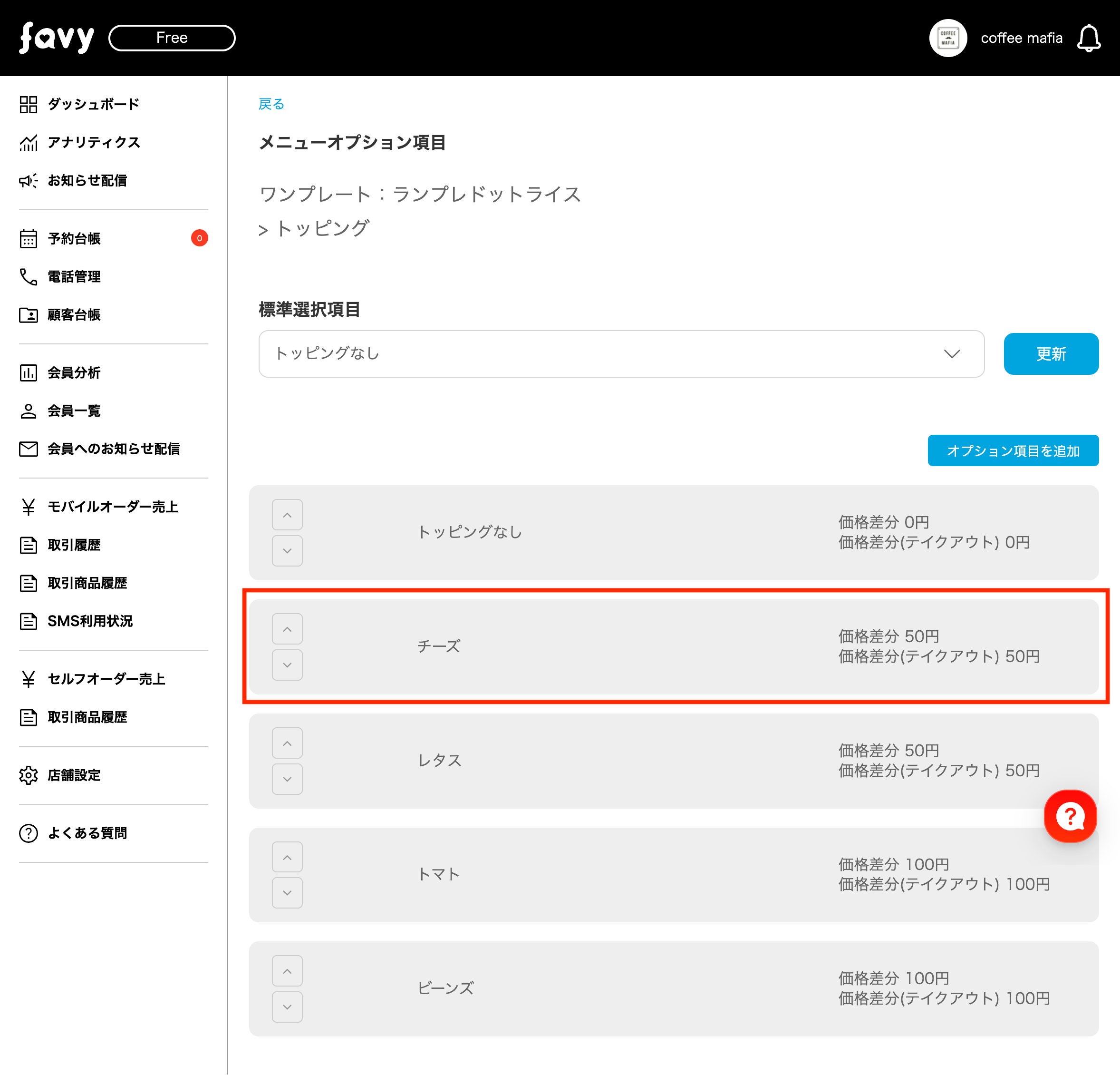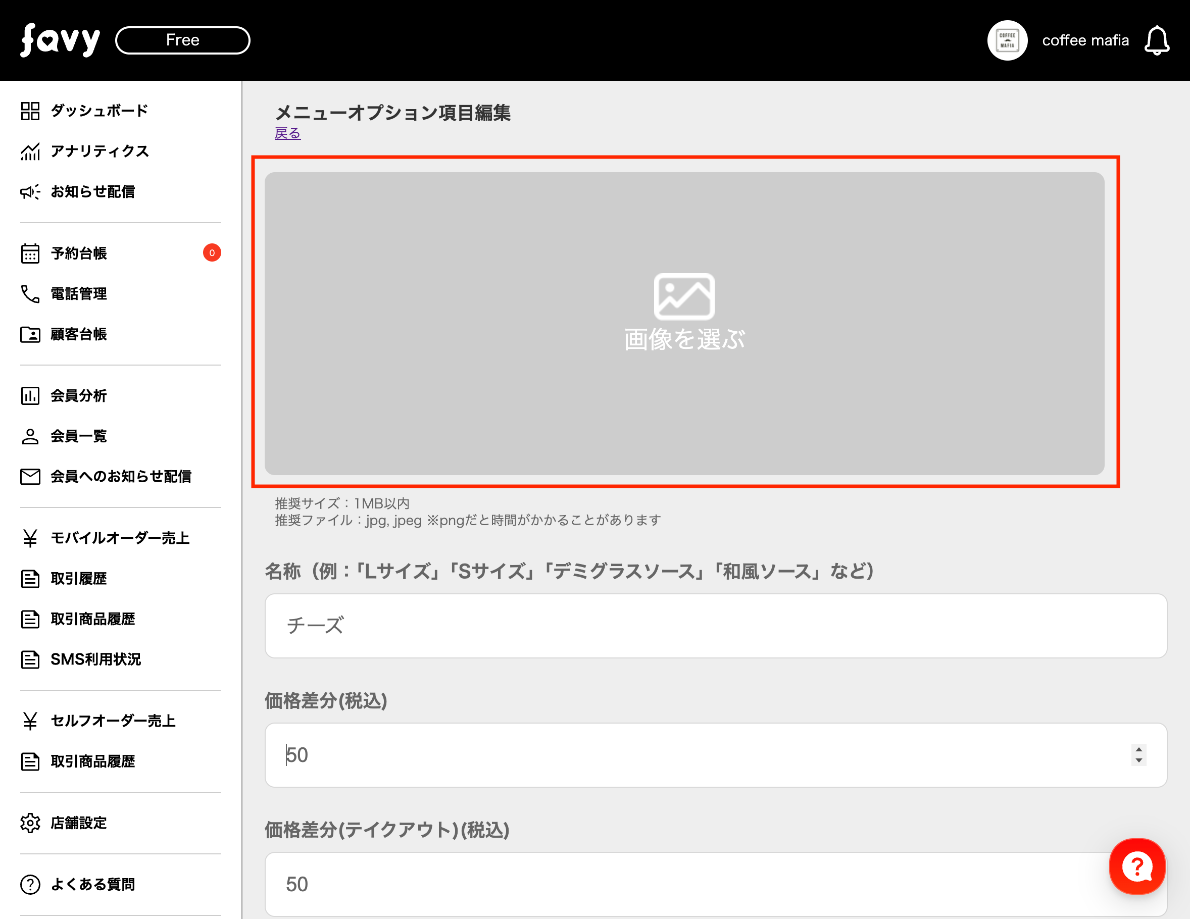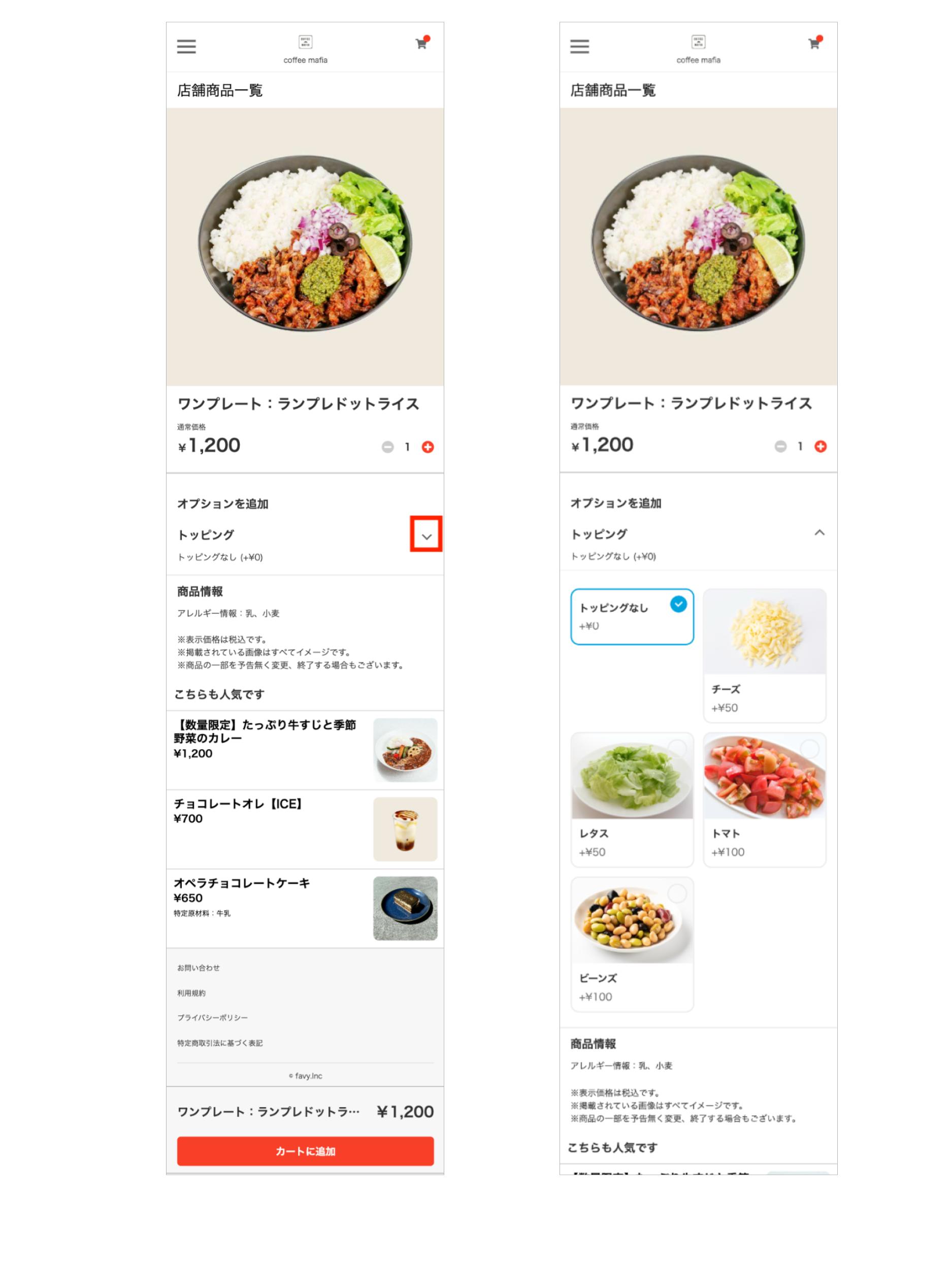このたびfavyモバイルオーダー(事前決済・事後決済)では、メニューオプションに画像が設定できるようになります。