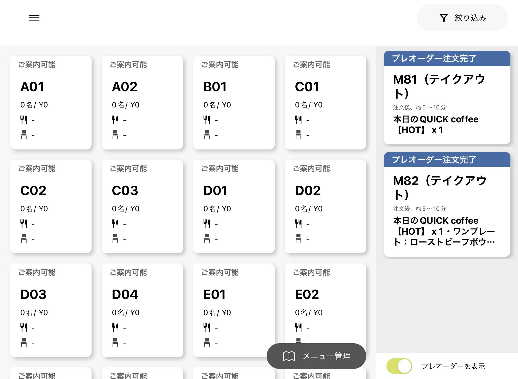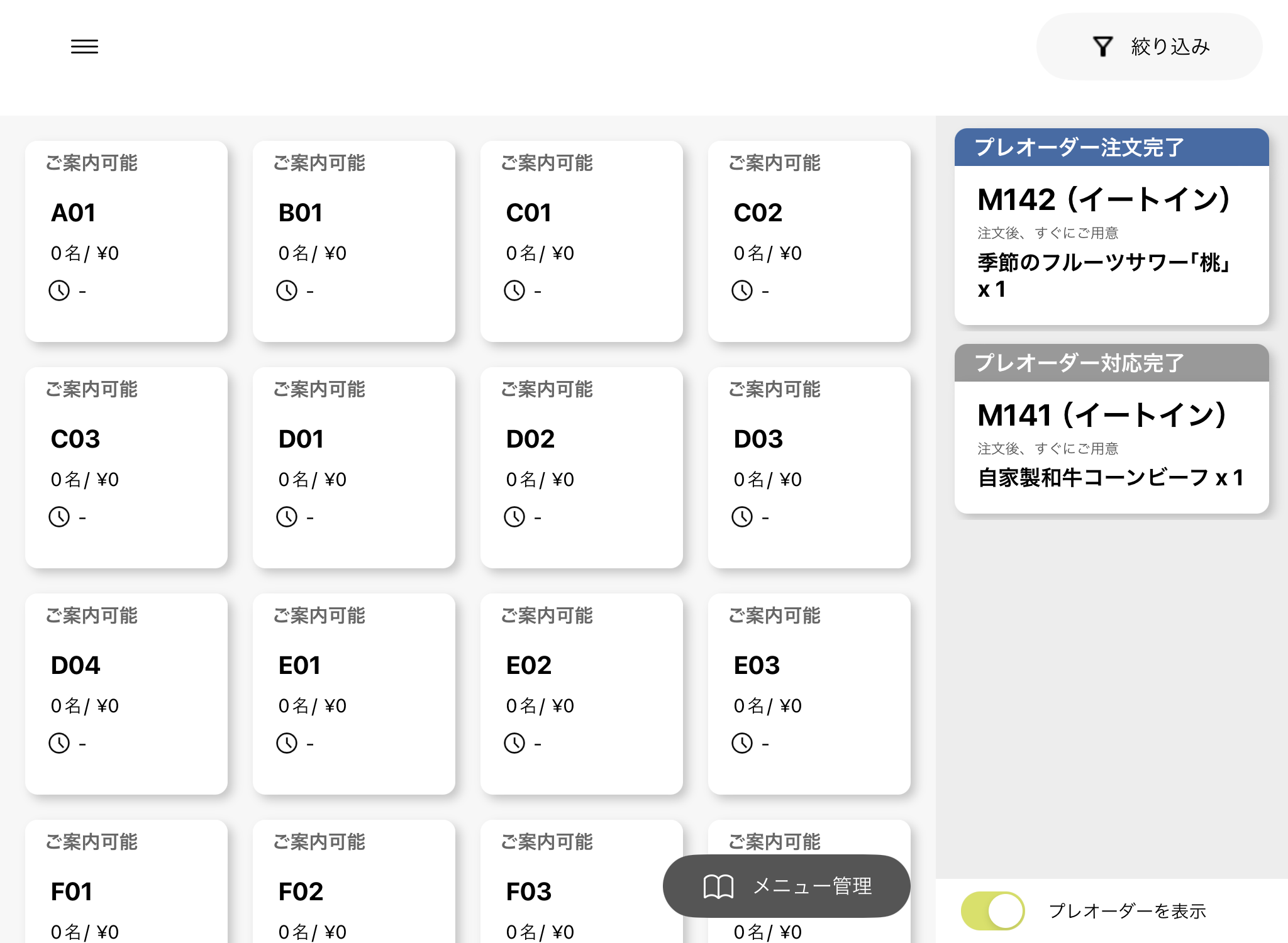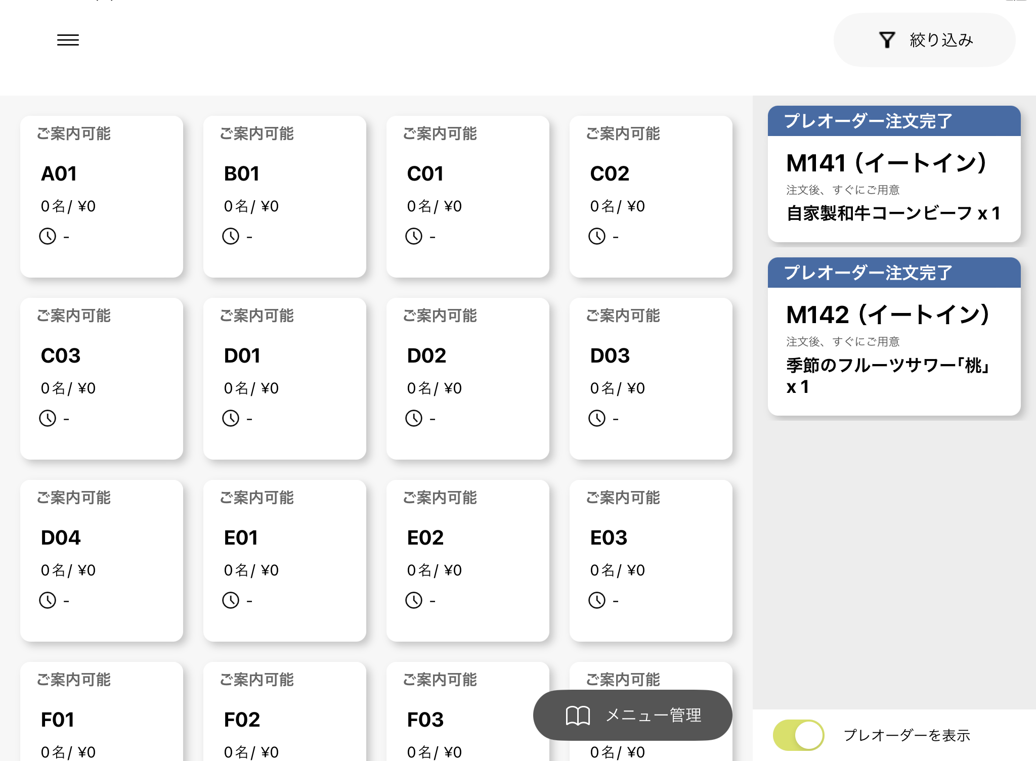 事前決済(プレオーダー)の注文が入ると右側に「プレオーダー注文完了」のチケットが表示されます。