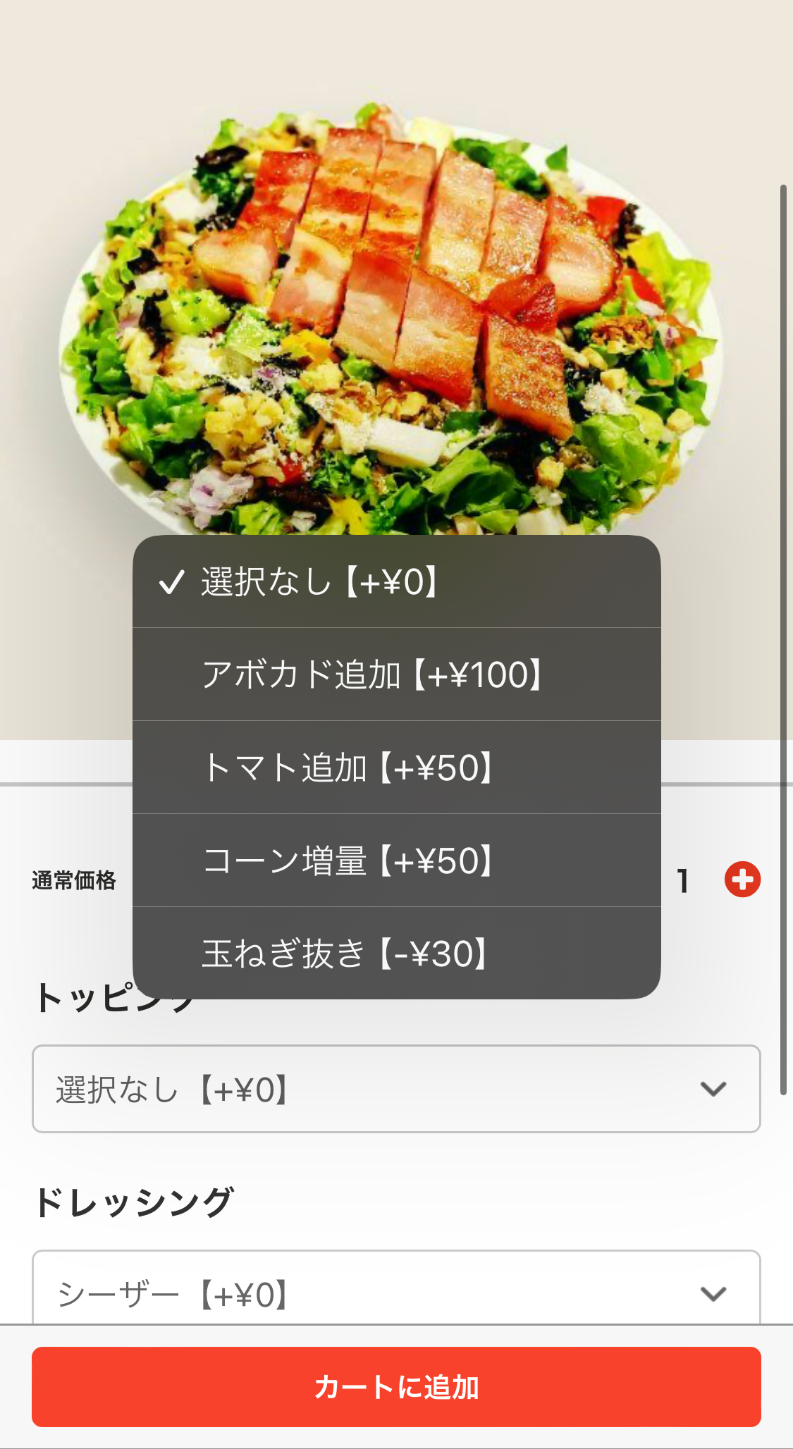 メニューを追加後オプション選択画面が表示されます