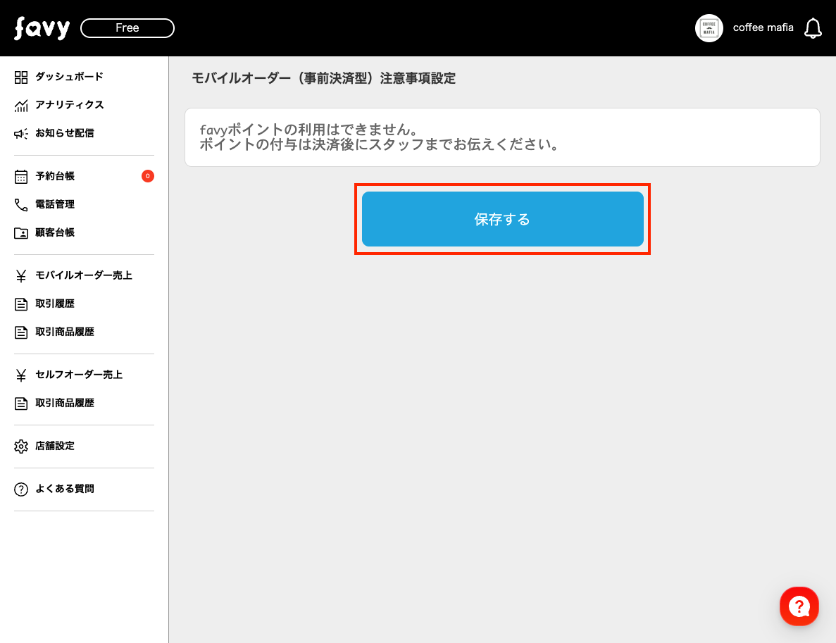 モバイルオーダー(事前決済):オーダー機能設定